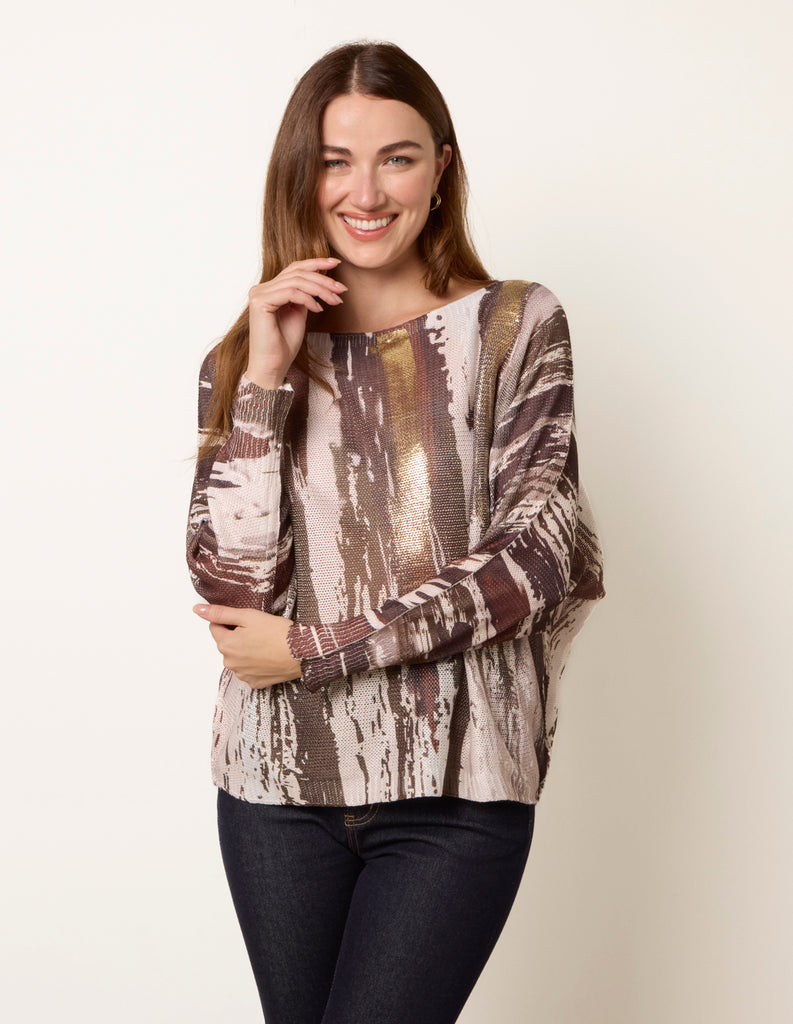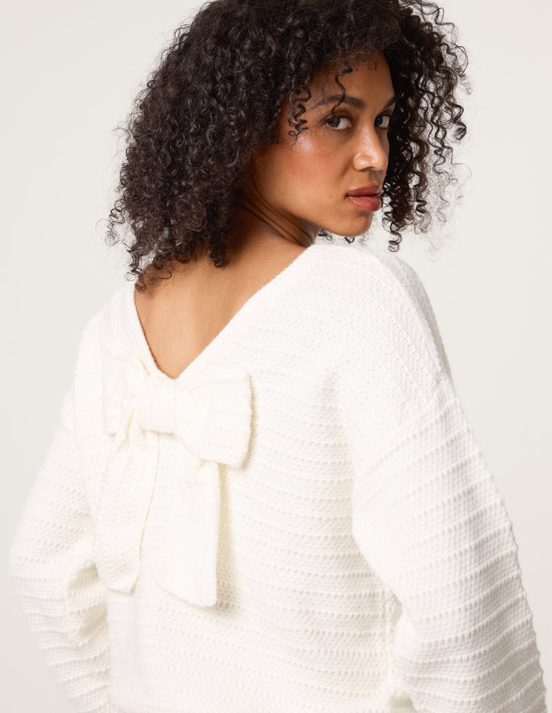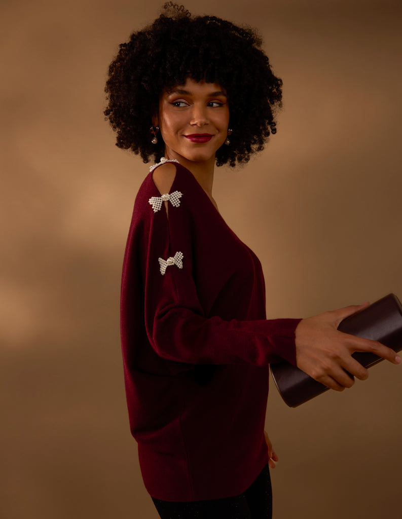 V-Neck Batwing Shoulder Pearl Detailing Jumper