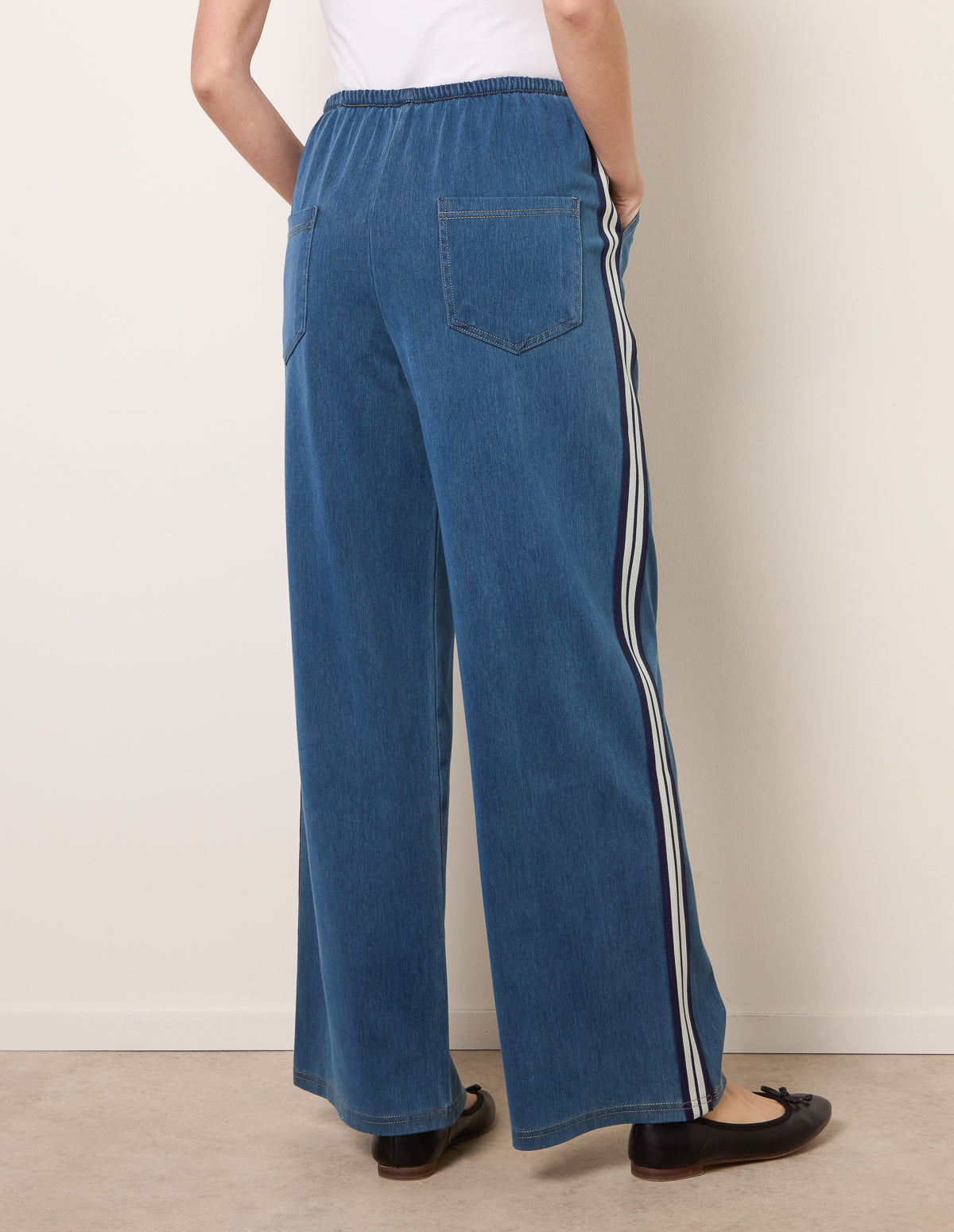 These relaxed fit denim joggers are perfect for running day to day errands. Their wide-leg cut and contrast stripes make them a great addition to your off-duty wardrobe.