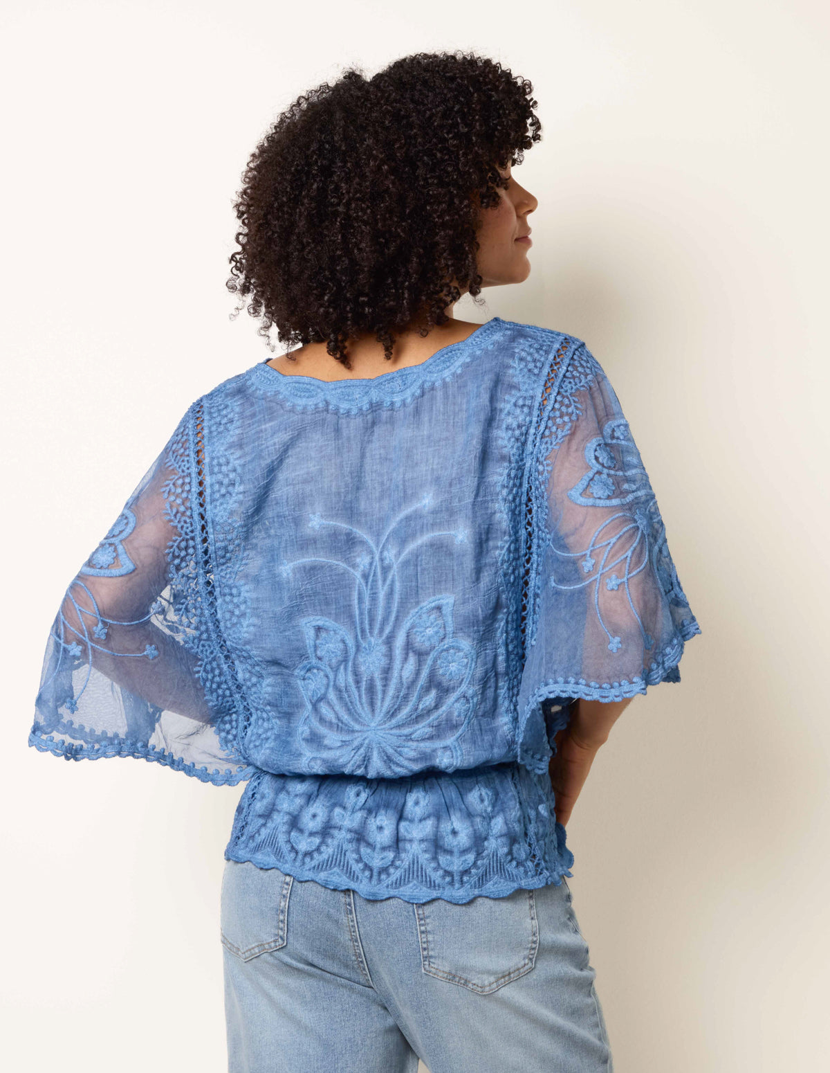 Floral Lace Butterfly Sleeve Blouse