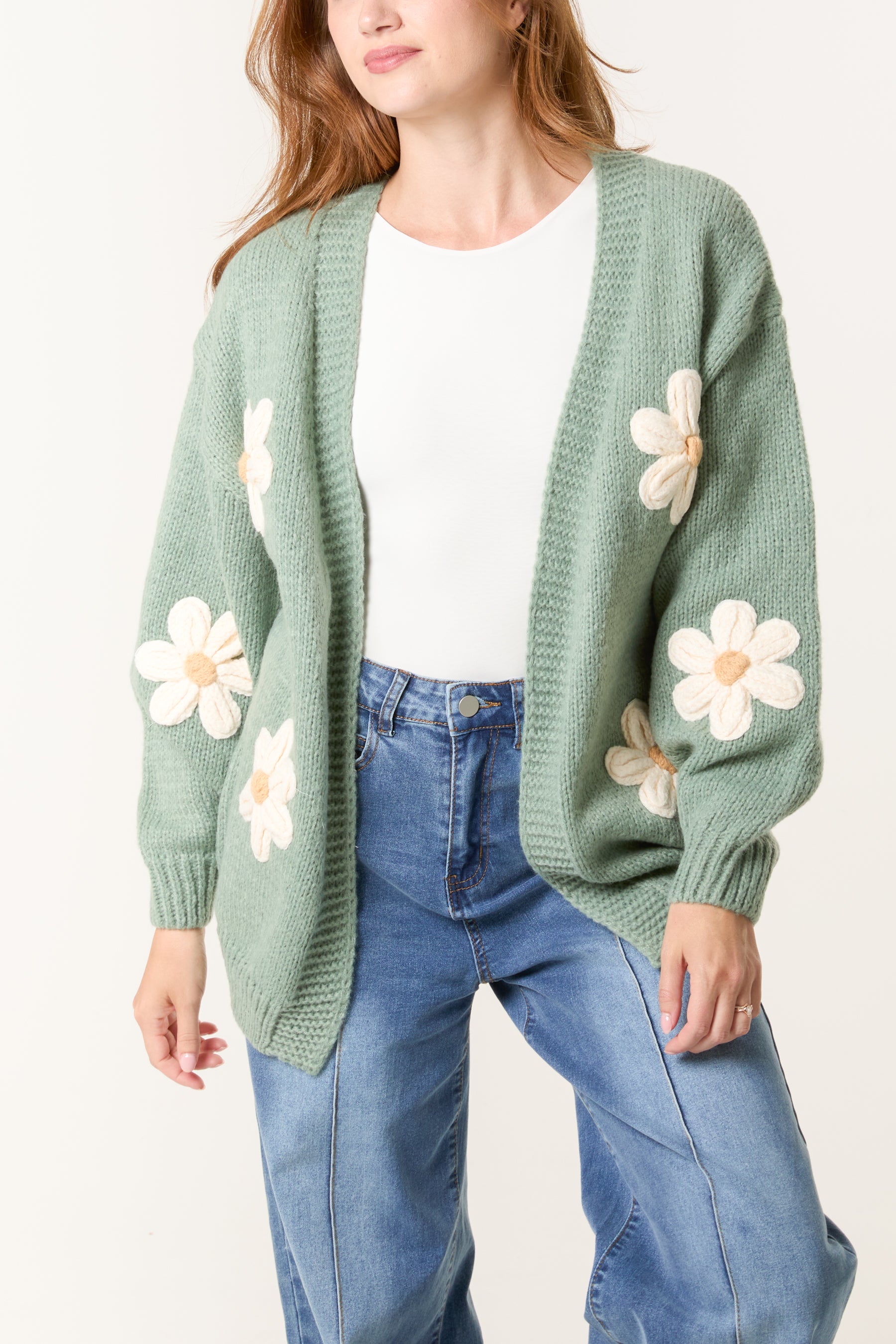 Taking it back to the 70's this season! This oversized, daisy embroidery knitted cardigan provides just that! Team this chunky cardigan with flares and pumps and gain ultimate styling points this AW.
