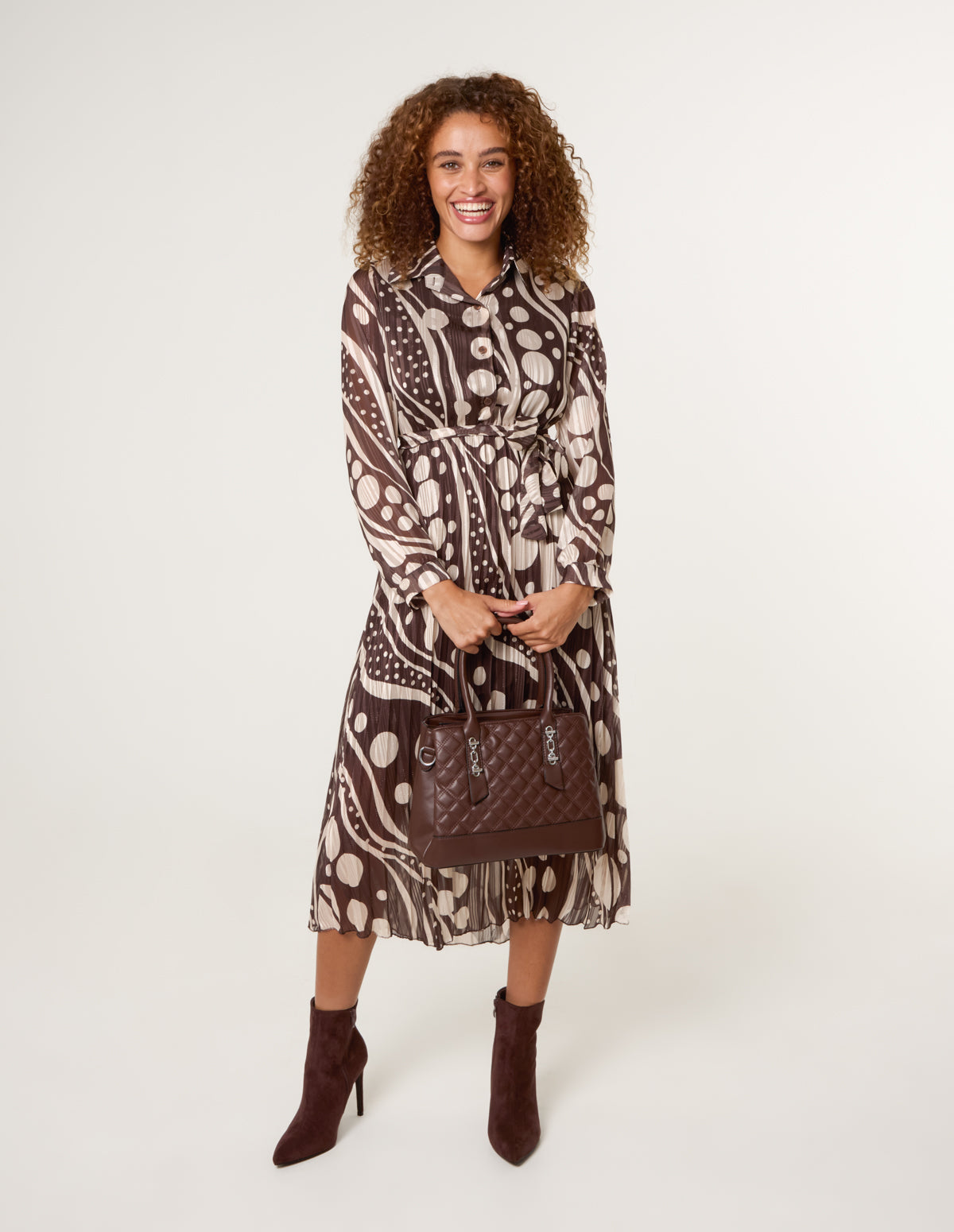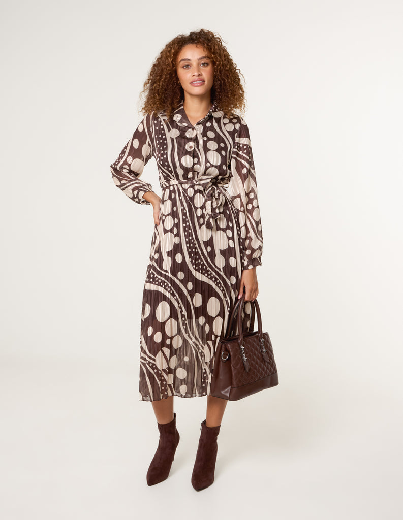 Keep it fun and funky in this geometric shirt dress. Team with knee high brown boots for the ultimate chic look.