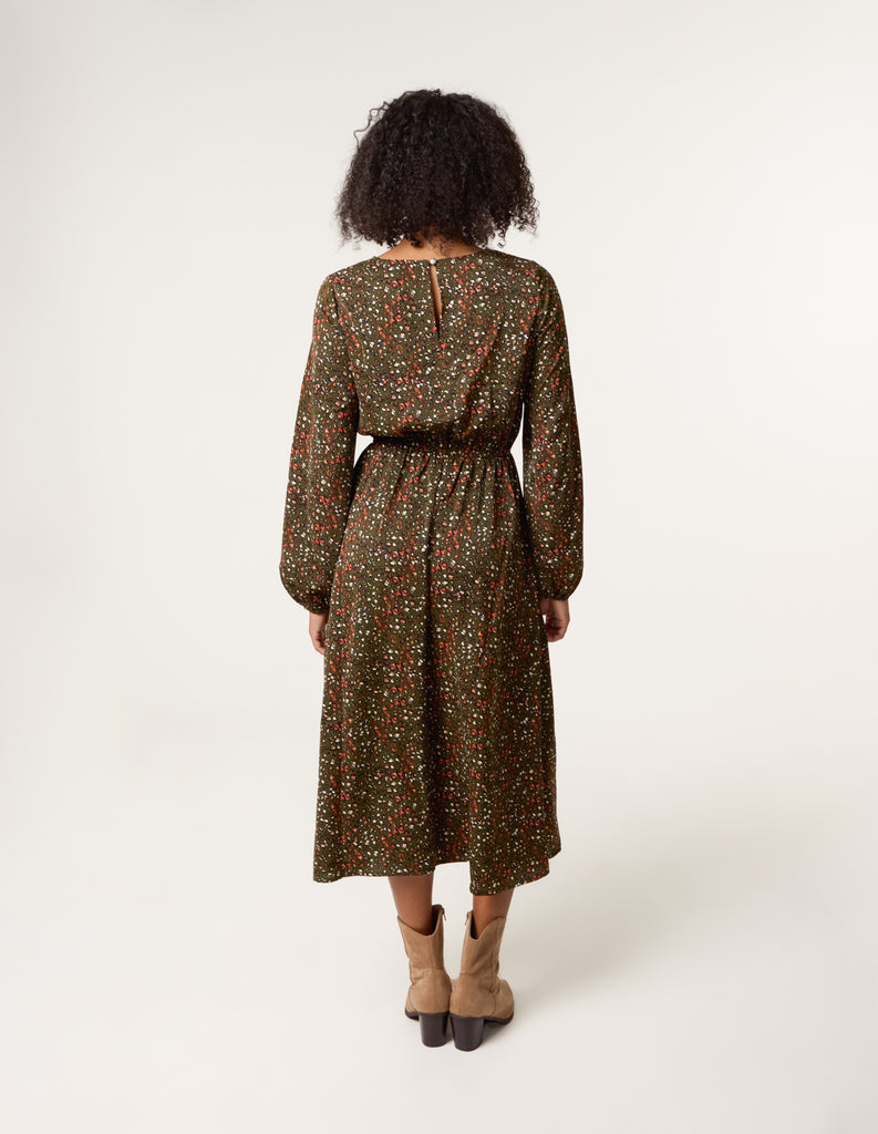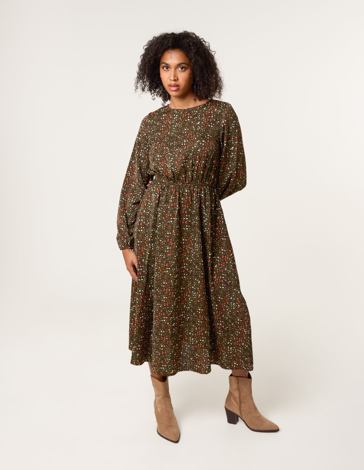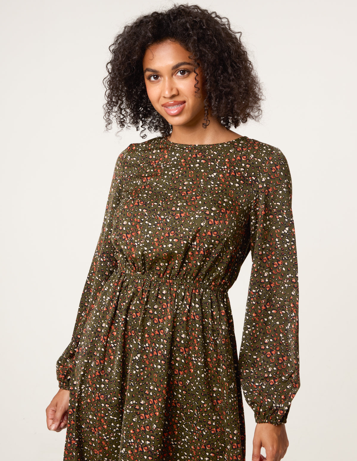 In stunning shades and animal print, this dress is sure to stand out from the rest. Team with tan suede boots.