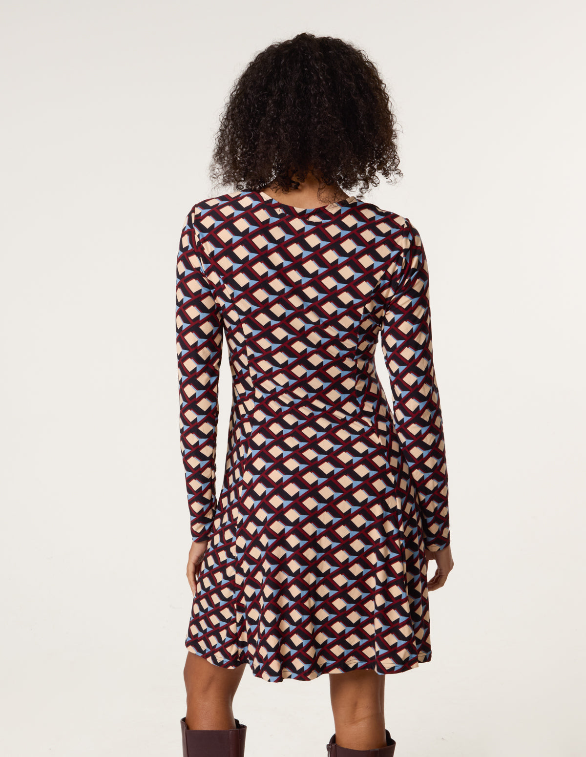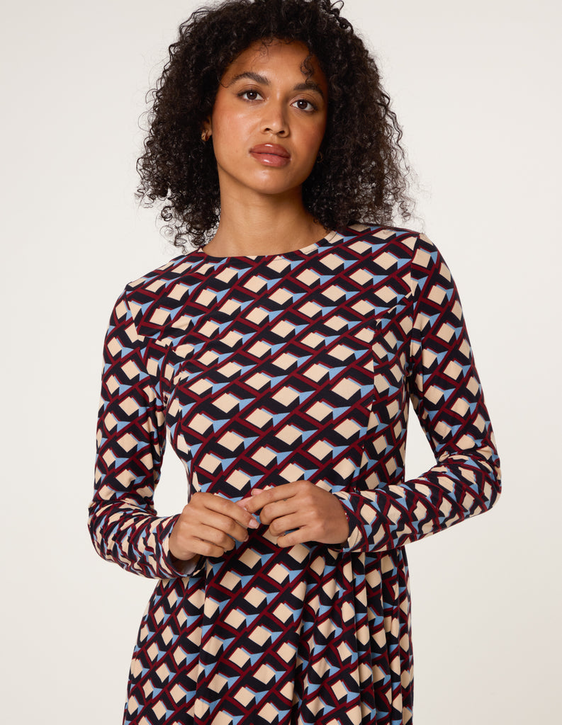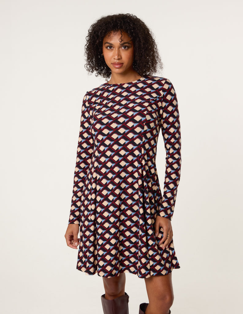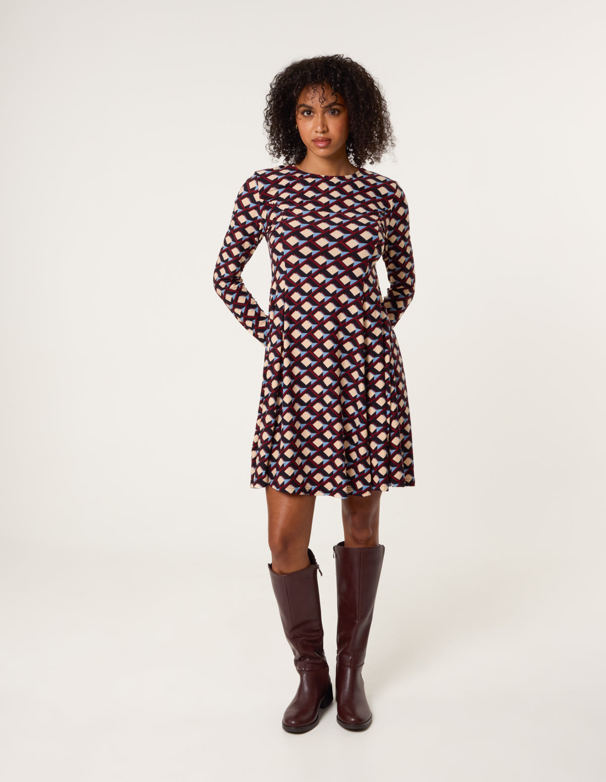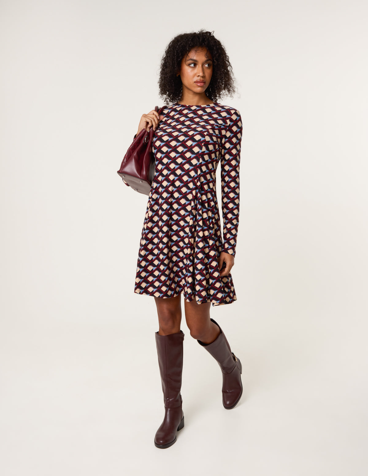 A fun printed dress for the office. Have a little fun with your formal wear with this soft touch crew neck dress. Team with tights, pumps and a cute cardi.