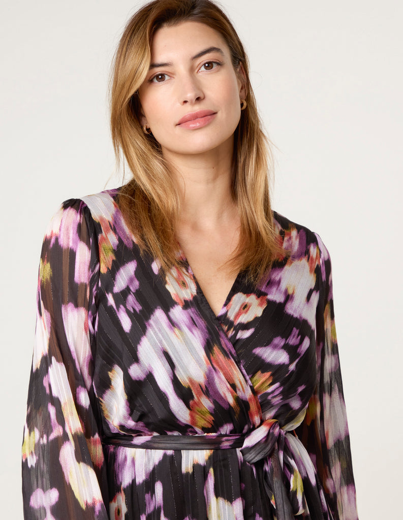 Add instant interest to special occasions this season, wearing our watercolour effect dress with a touch of metallic perfect for the party season.