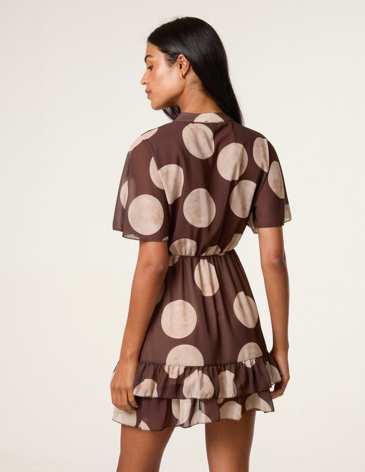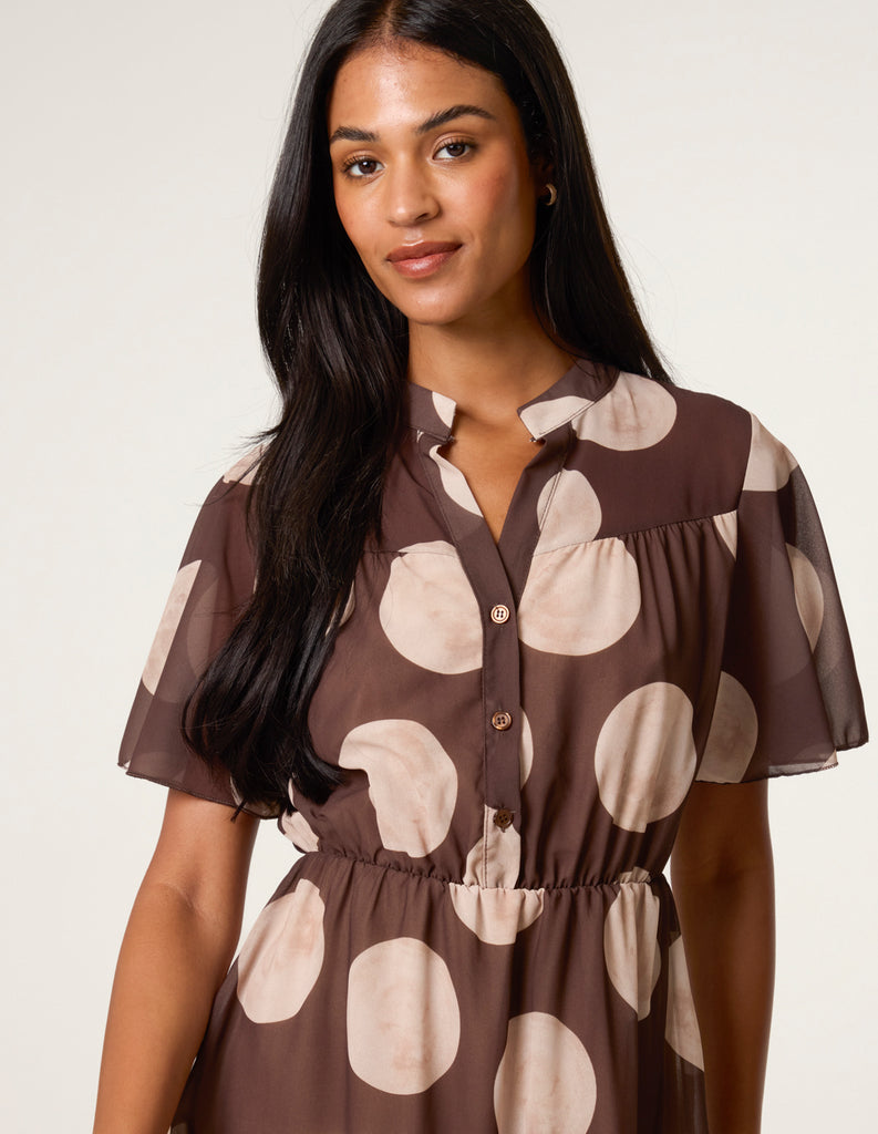Polka Dot Button Up Double Frill Short Sleeve Dress