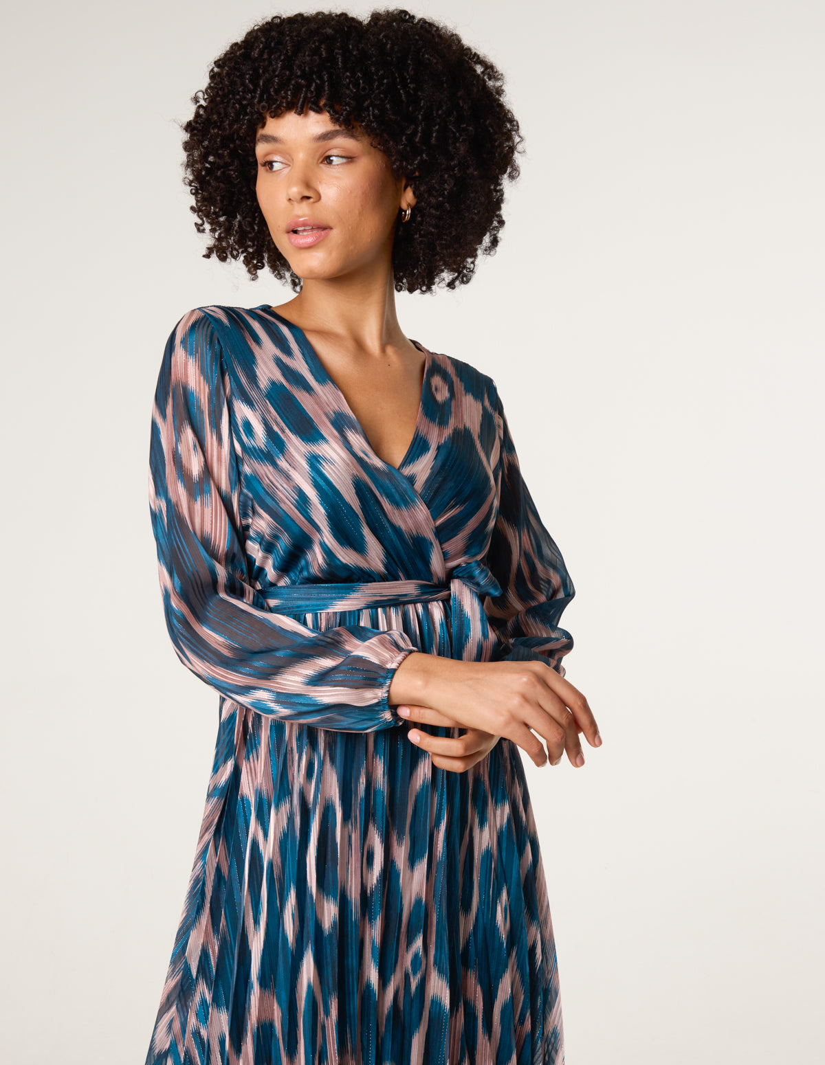 Crossover Metallic Pleated Dress