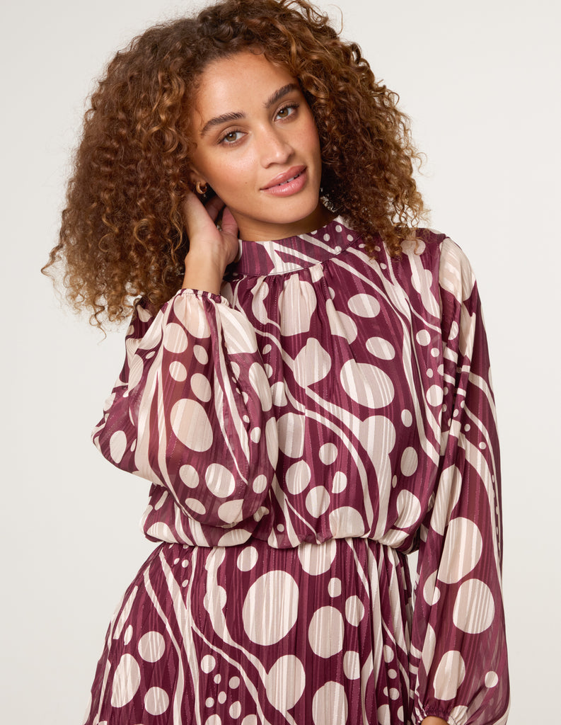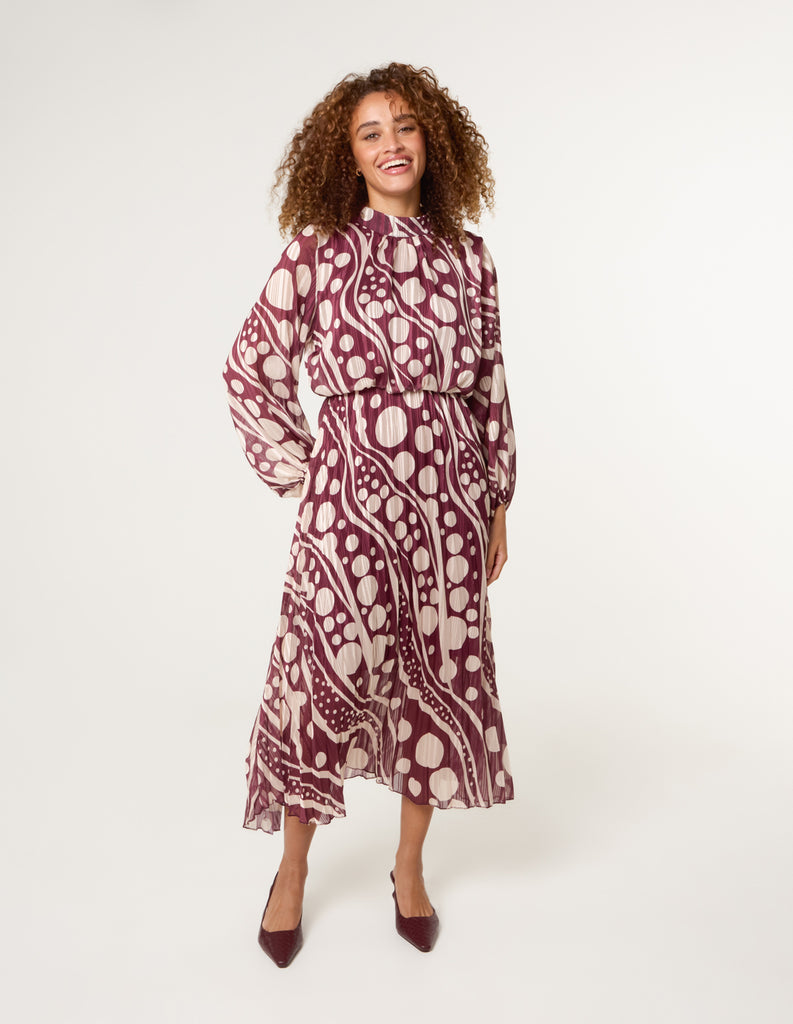 Keep it fun and funky in this geometric pleated dress. Team with court heels for the perfect desk to date night kinda look.