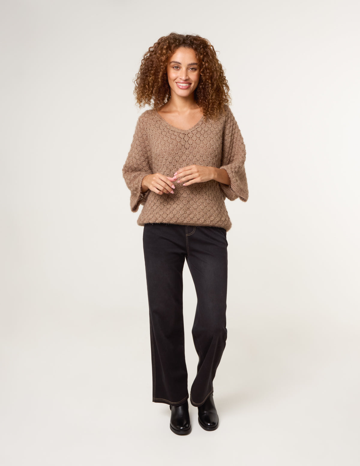 This oversized knitted jumper is the perfect throw-on and go jumper. With it being a transitional layering piece, as you move into the colder months ahead.