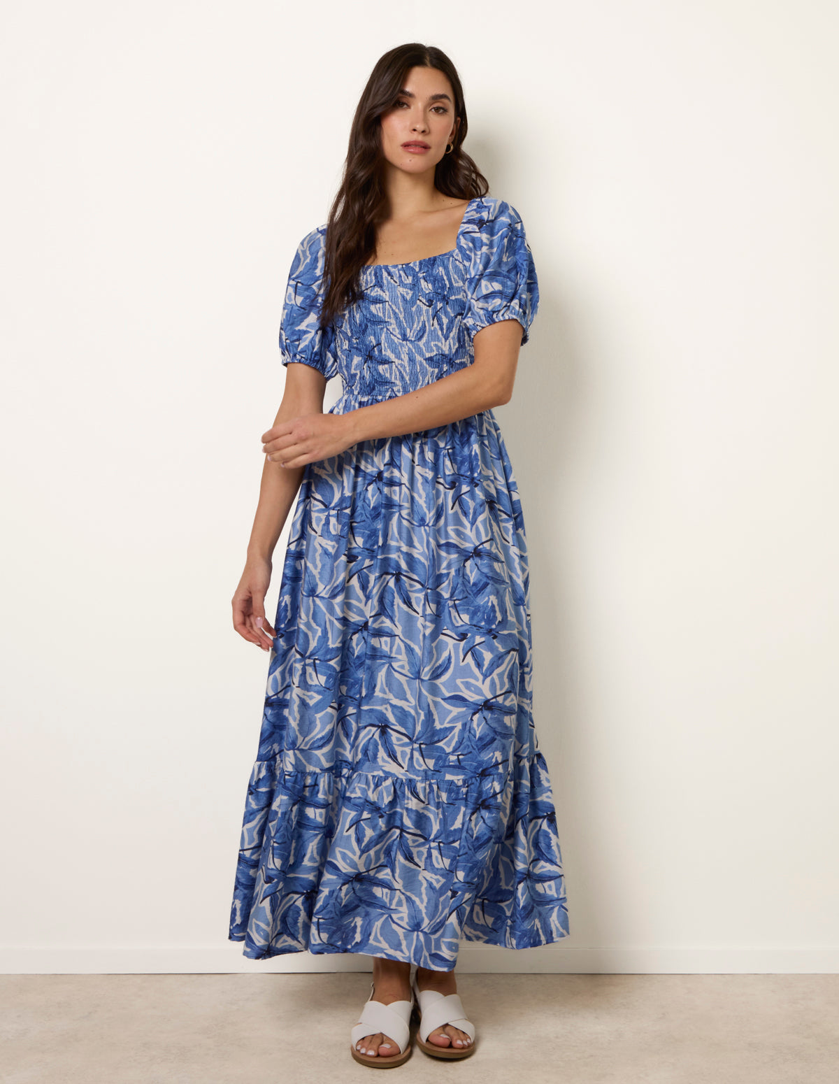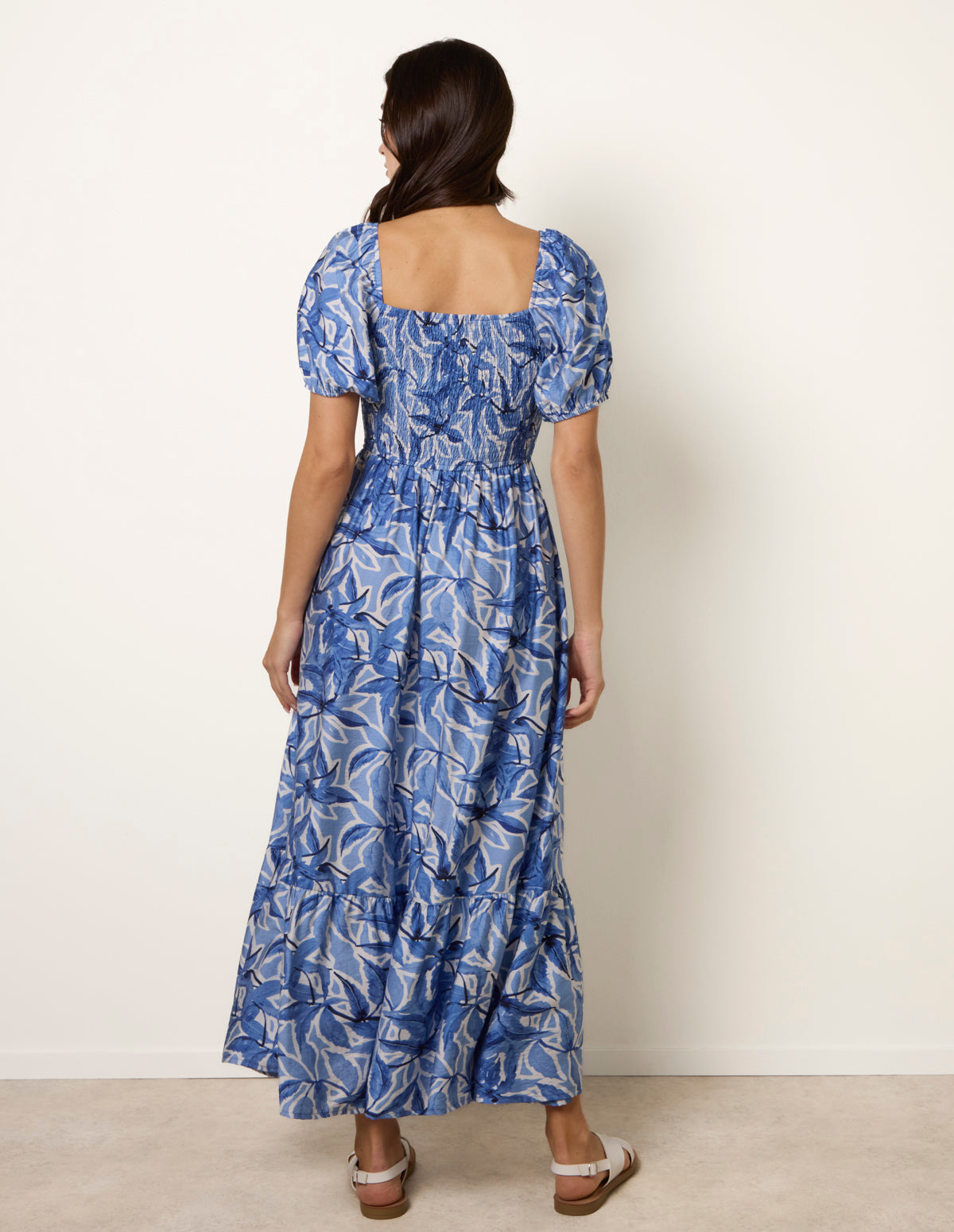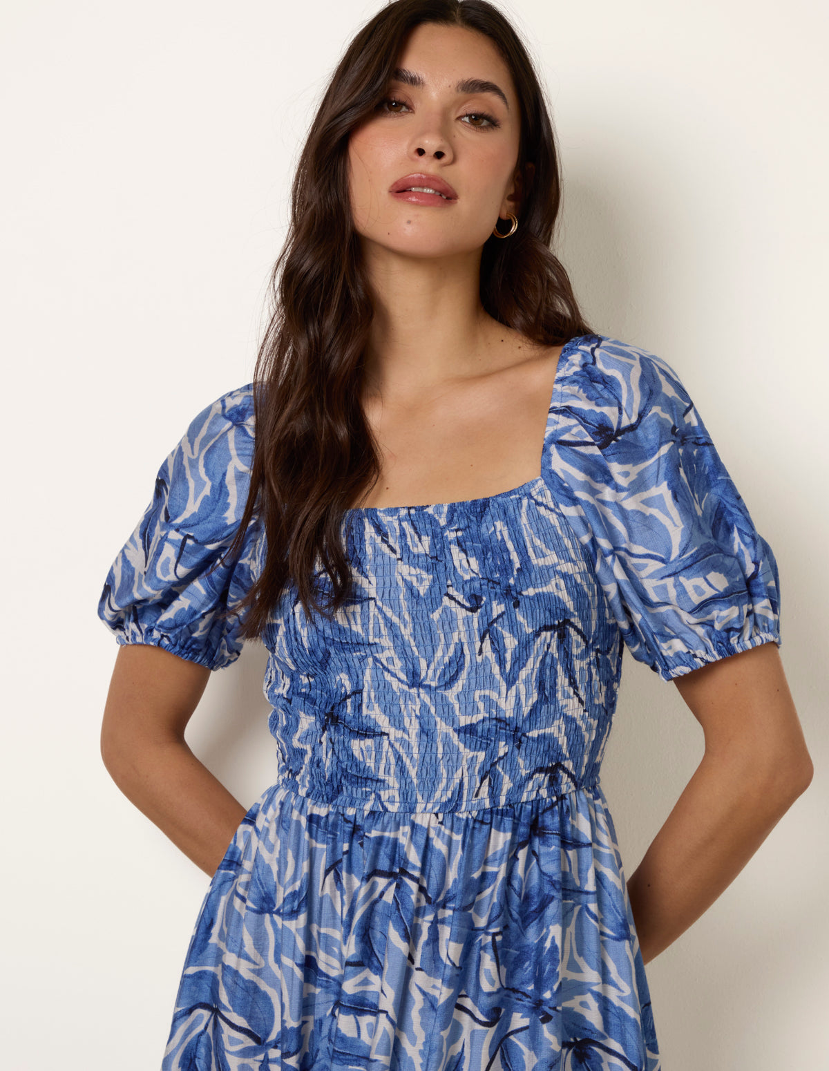 Large Floral Printed Square Neck Puff Sleeve Dress
