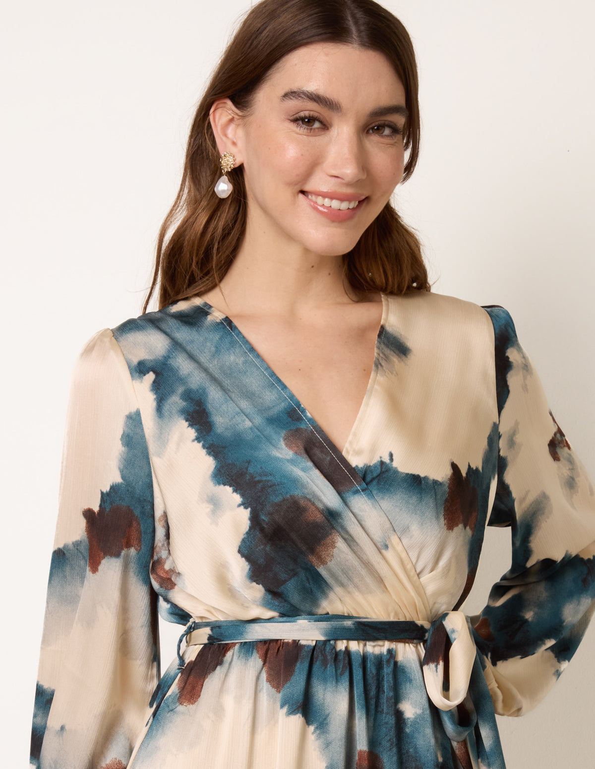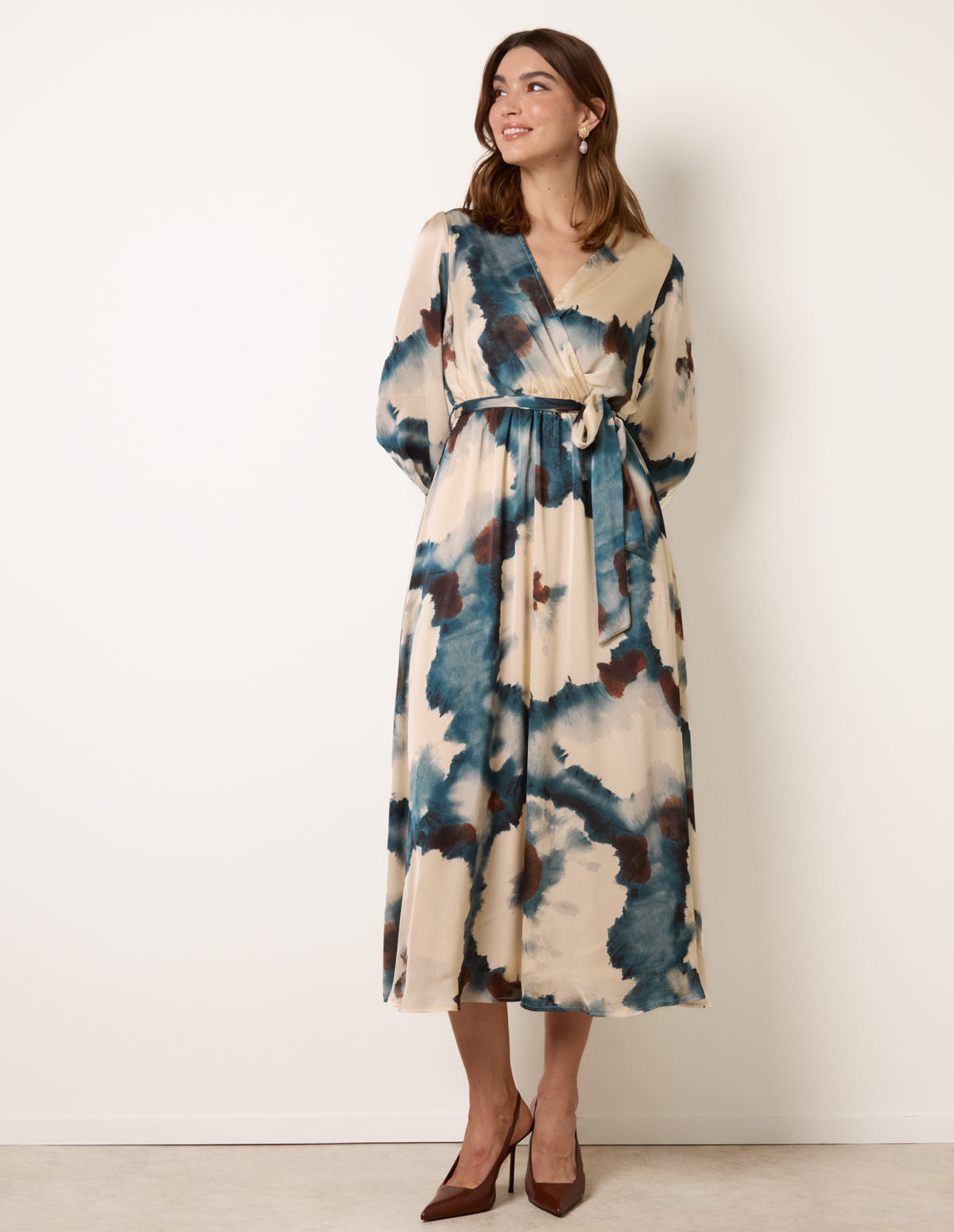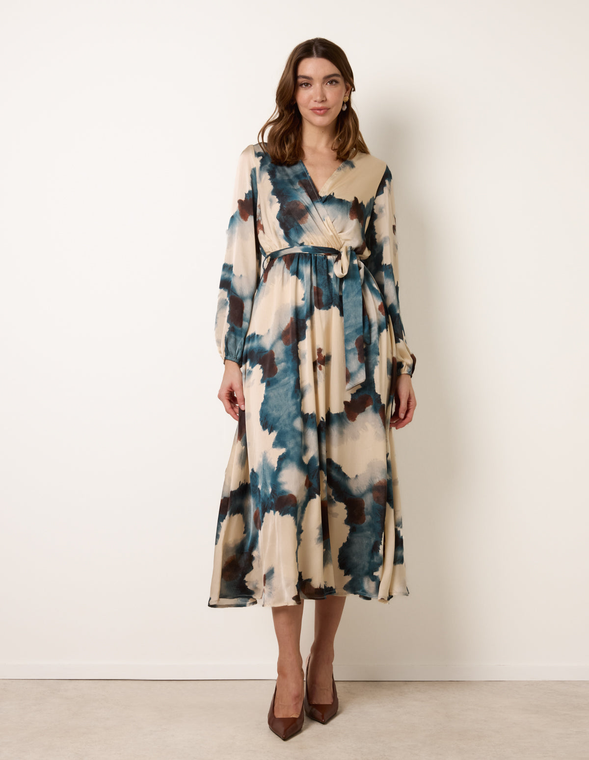 Watercolour Wrap Dress With Tie Belt