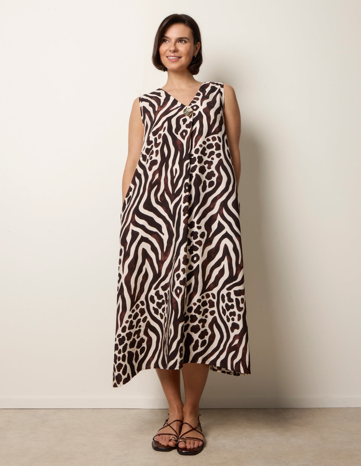 Switch up your animal collection and add a touch of impact to your wardrobe with this lightweight cow-print dress. Team with brown suedette sandals to finish off the look.