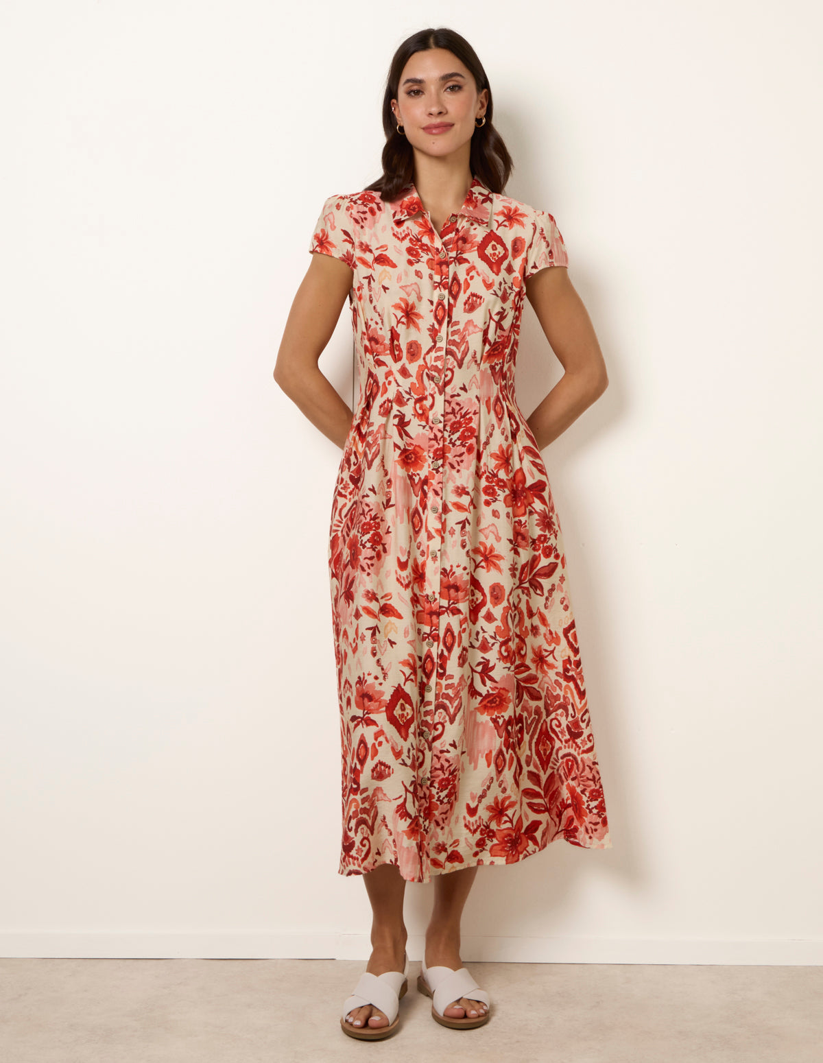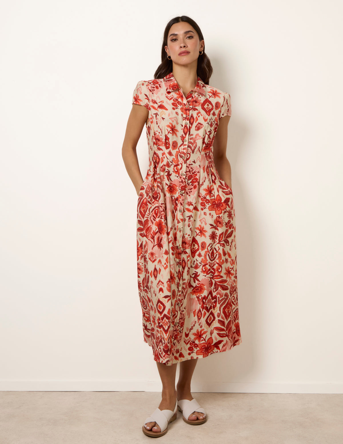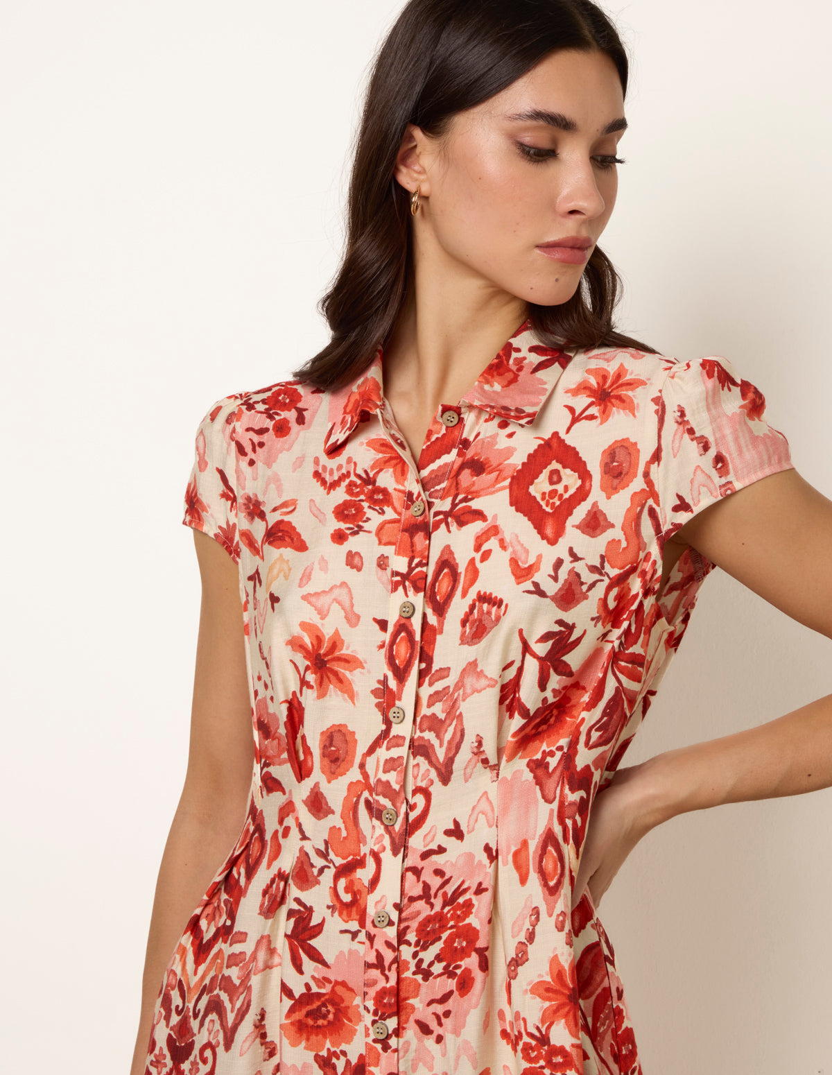 Watercolour Floral Printed Button Front Shirt Dress