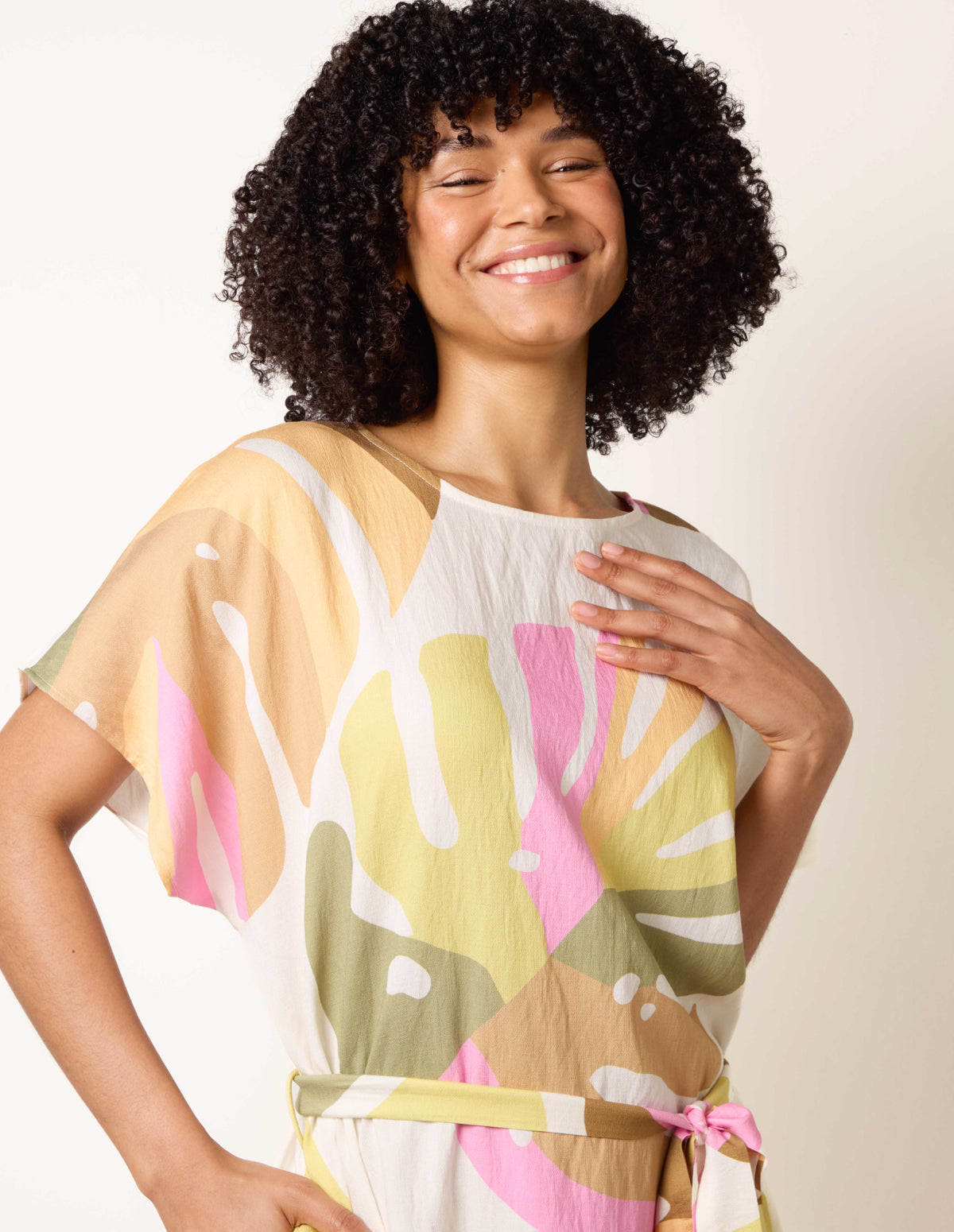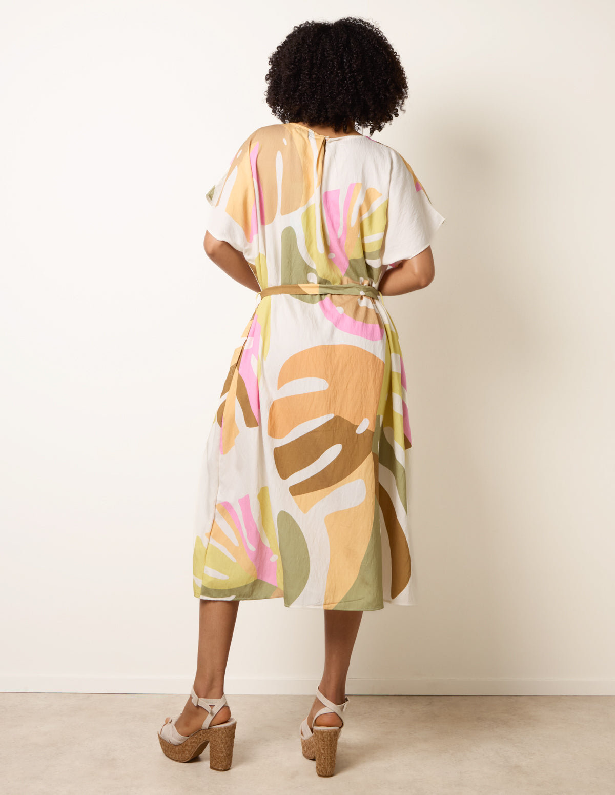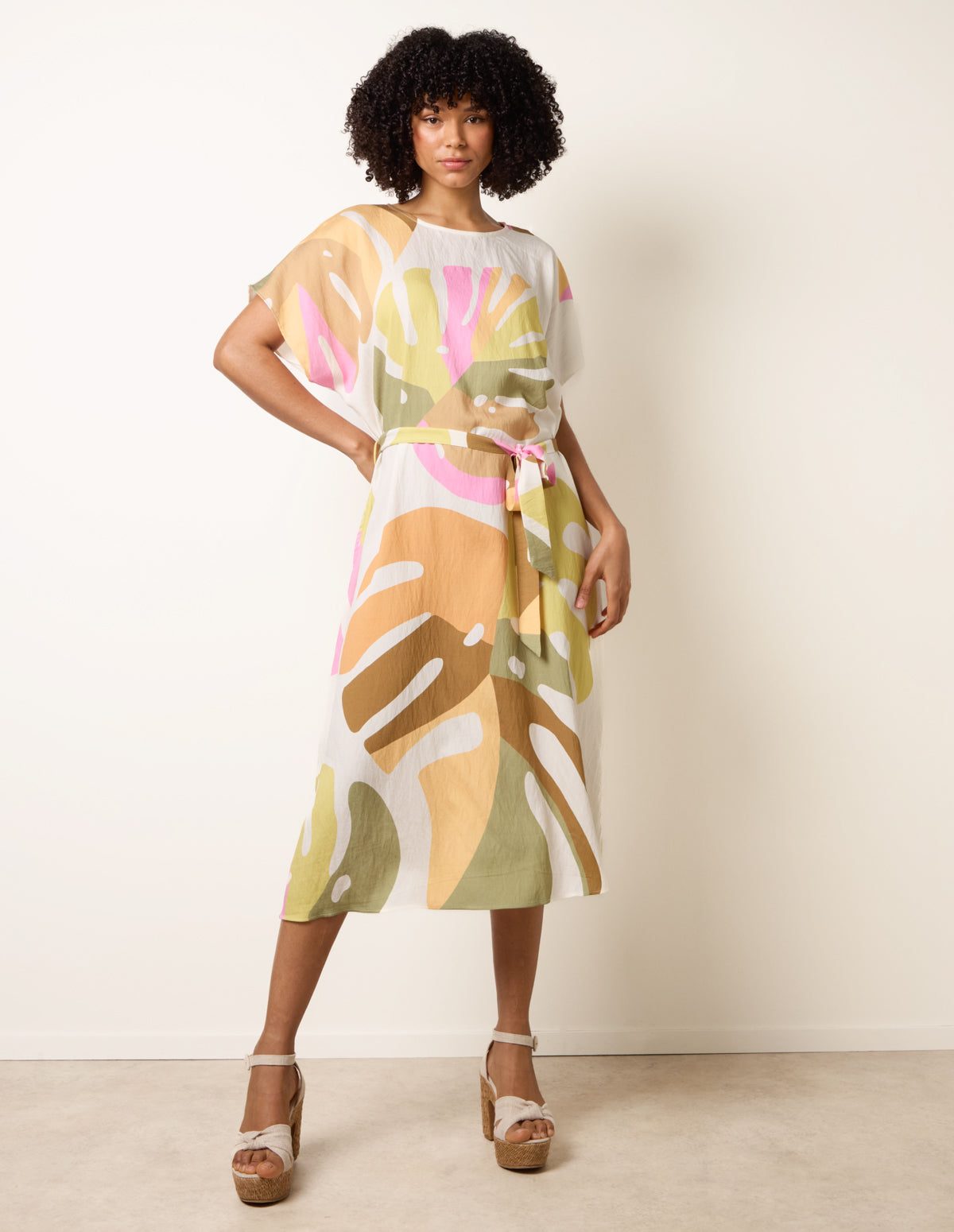 Vibrant Oversized Tie Waist Crew Neck Midi Dress