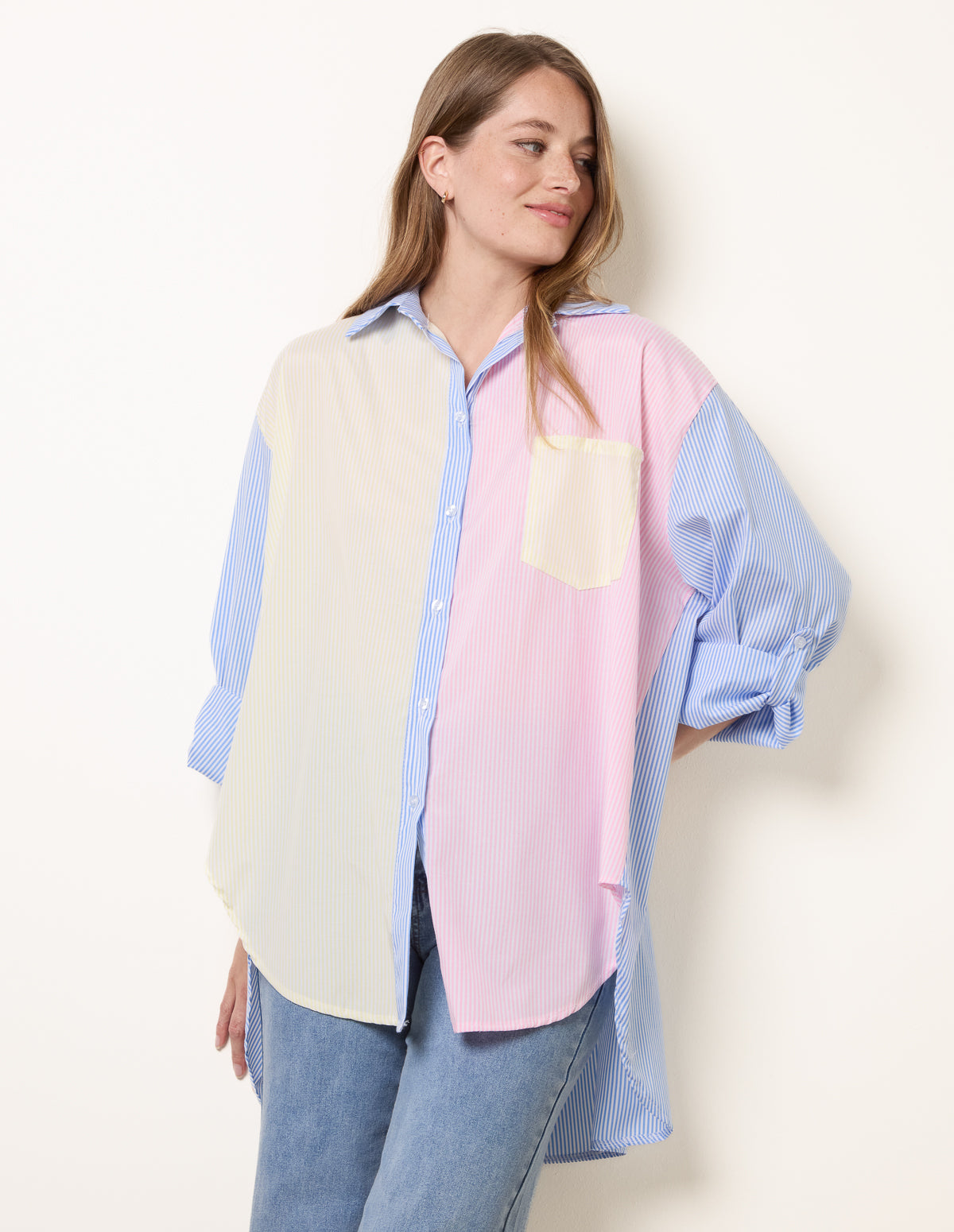 This shirt screams Spring with all it's pastel shades. A light and airy shirt perfect perfectly teamed with jeans and trainers.