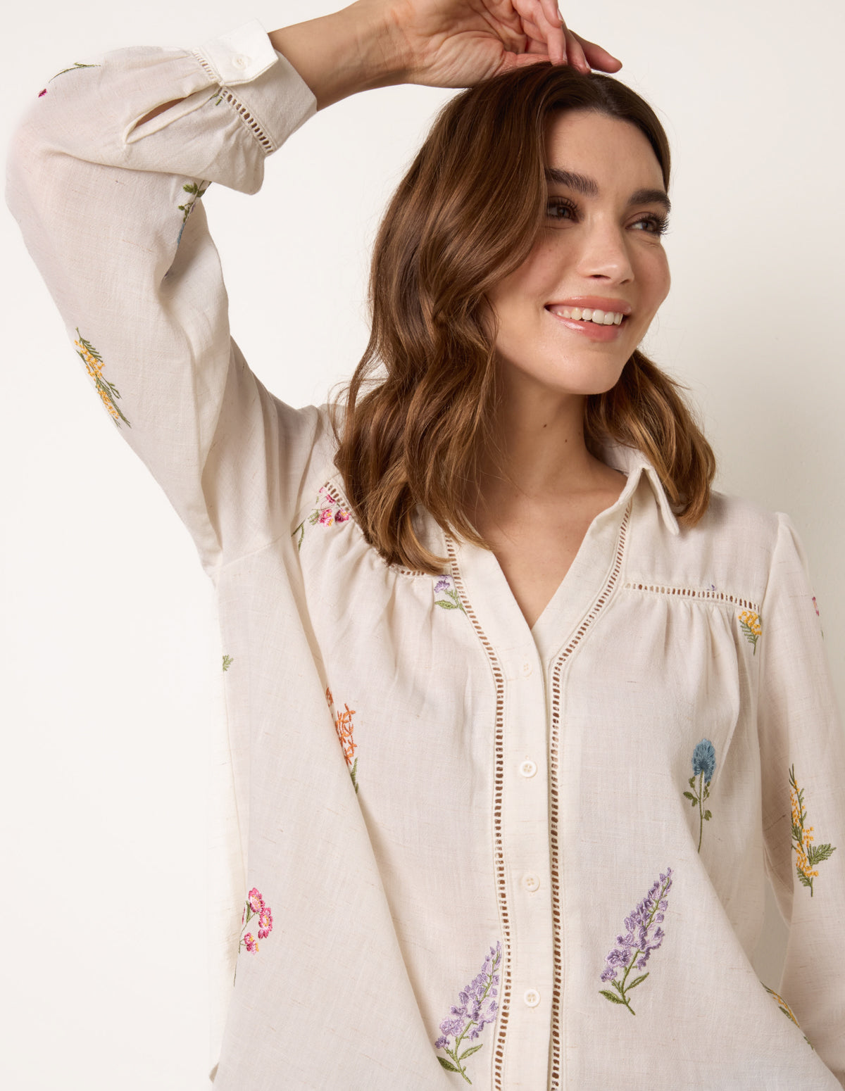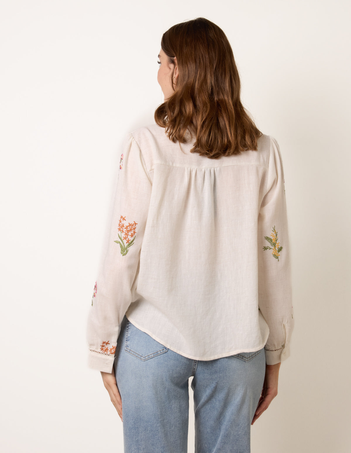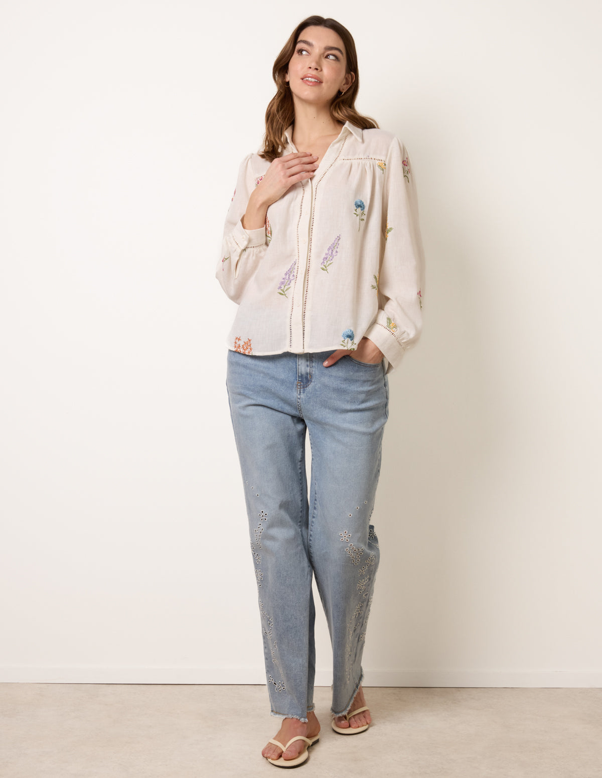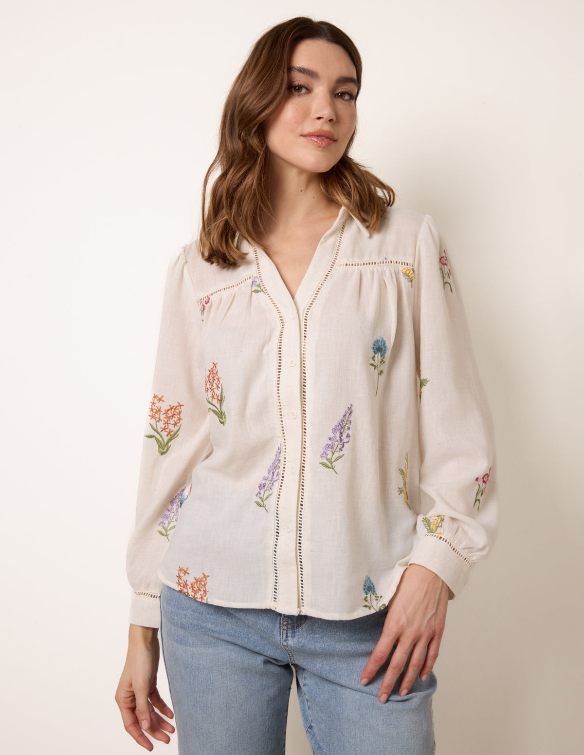 Long Sleeve Embroidered Button Front Blouse