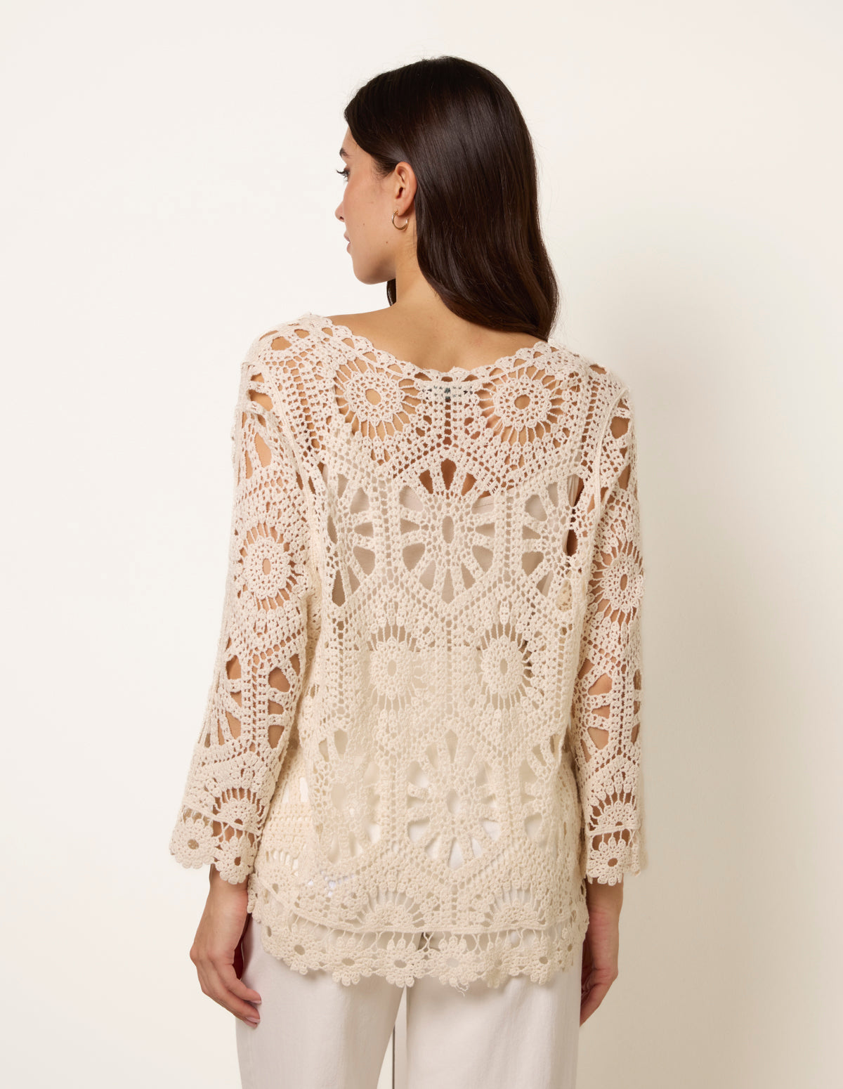 Long-Sleeved Crochet Cardigan