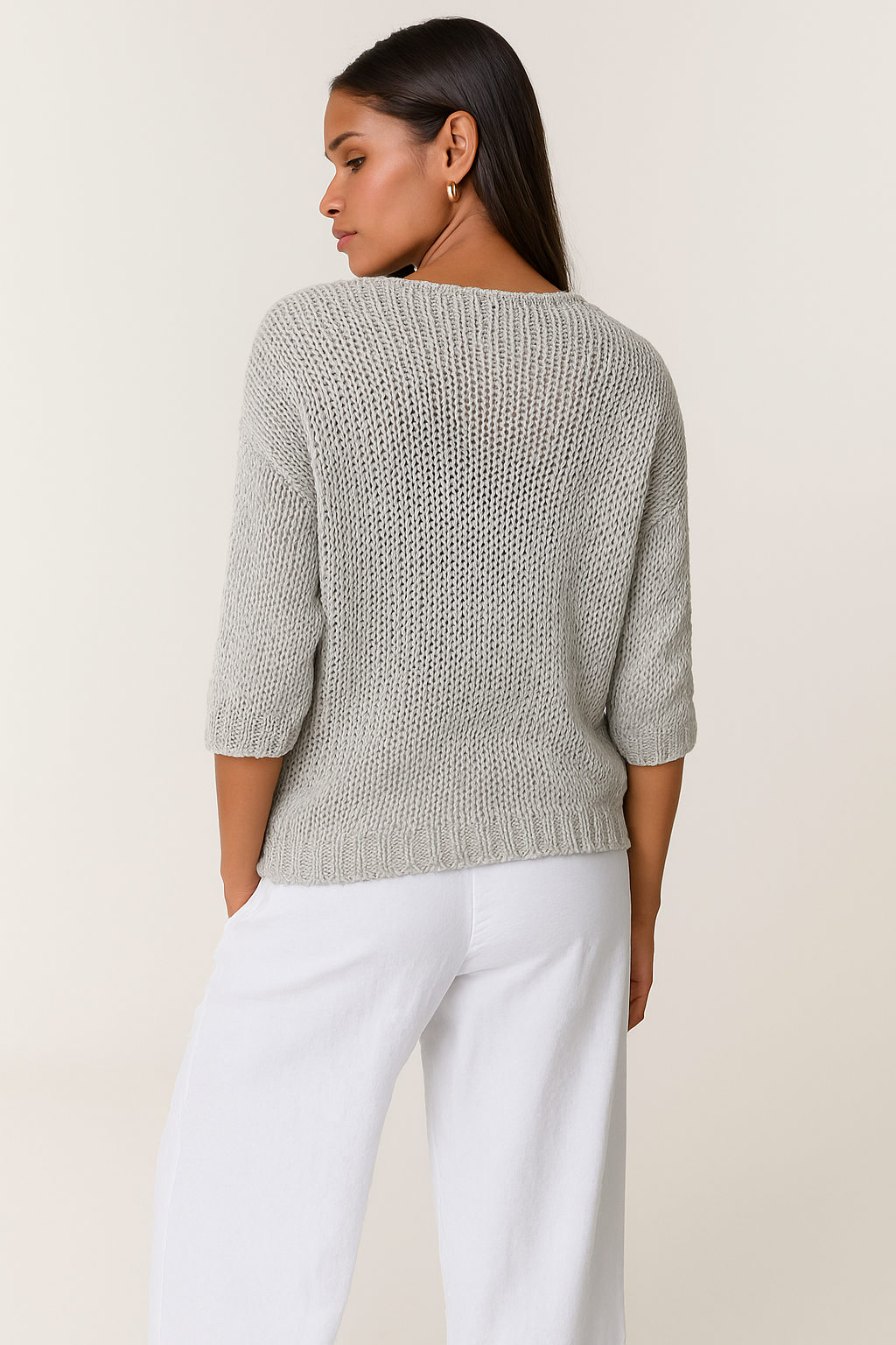 This stone grey knitted top with batwings can be the perfect layering piece.