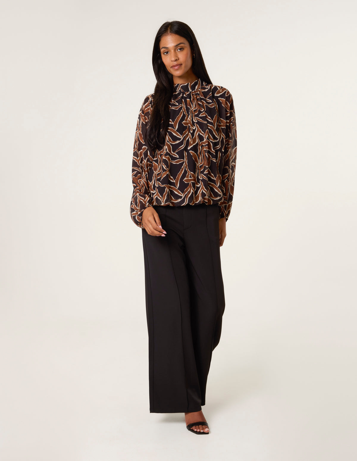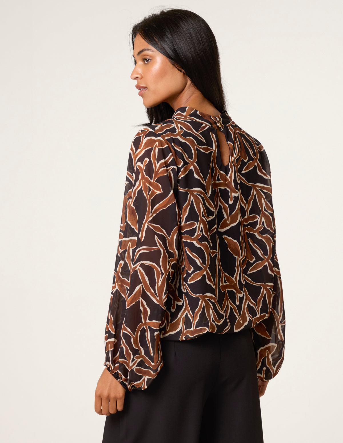 Abstract Printed High Neck Puffball Top
