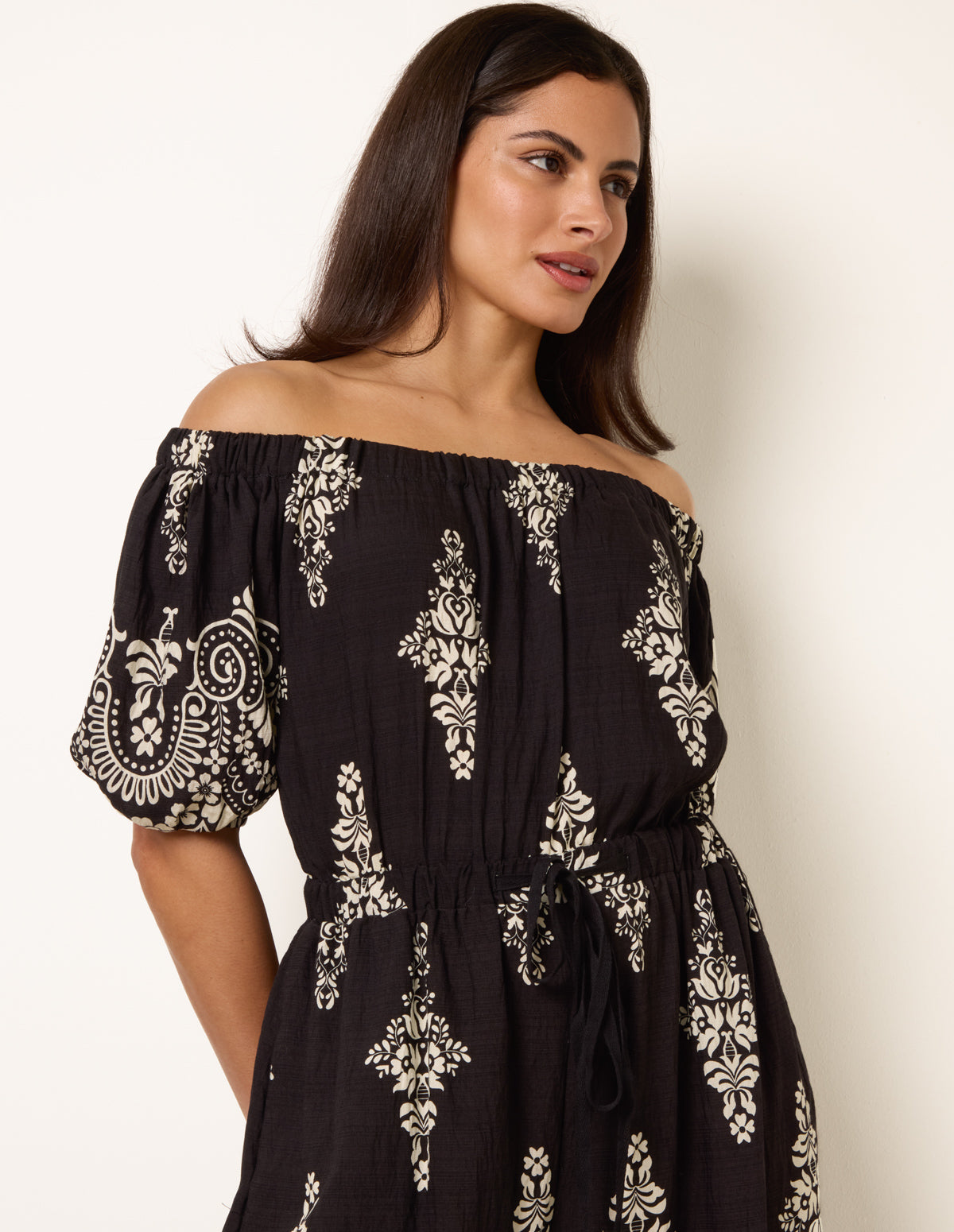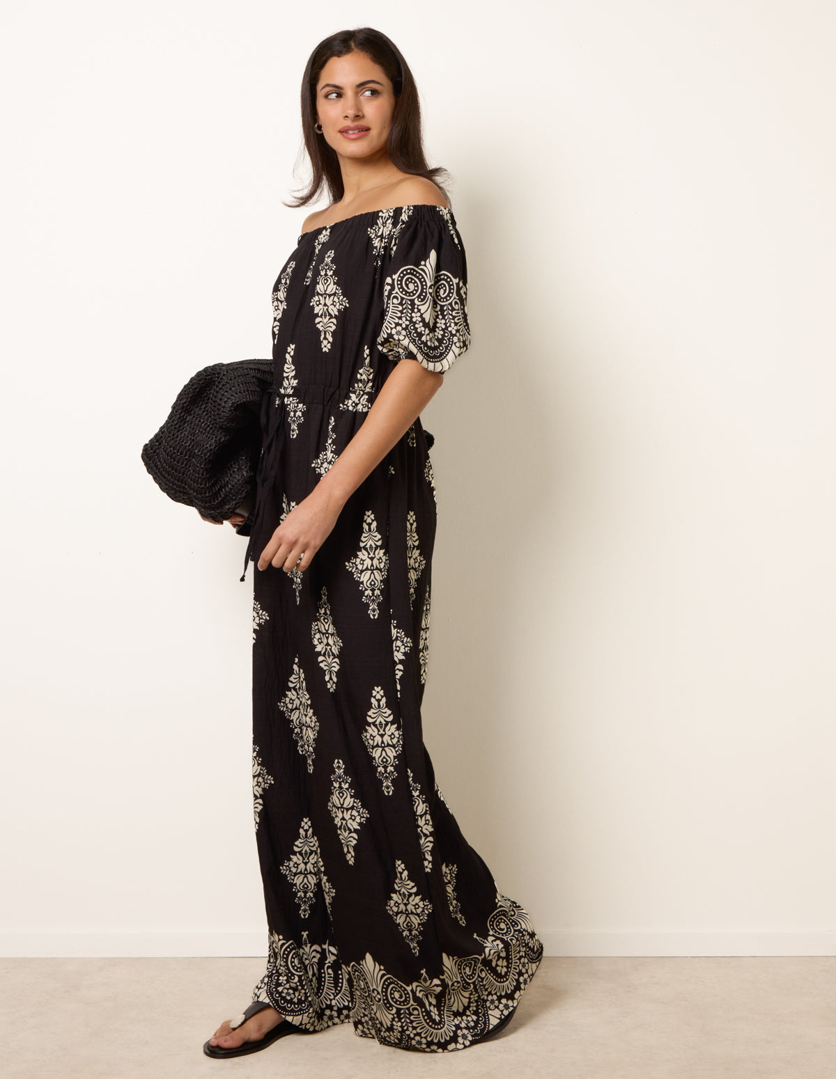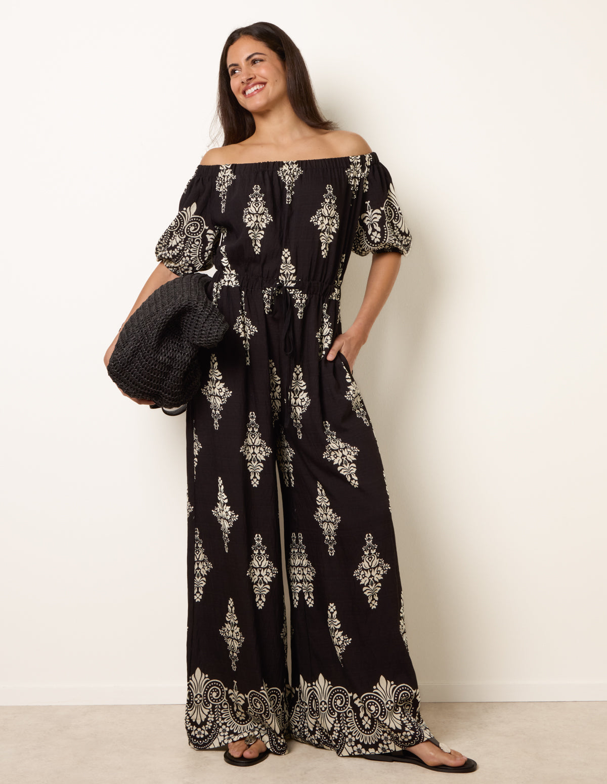 The perfect summer one piece, this flowy bardot jumpsuit provides comfort on those warmer days. Team with your favourite sandals.