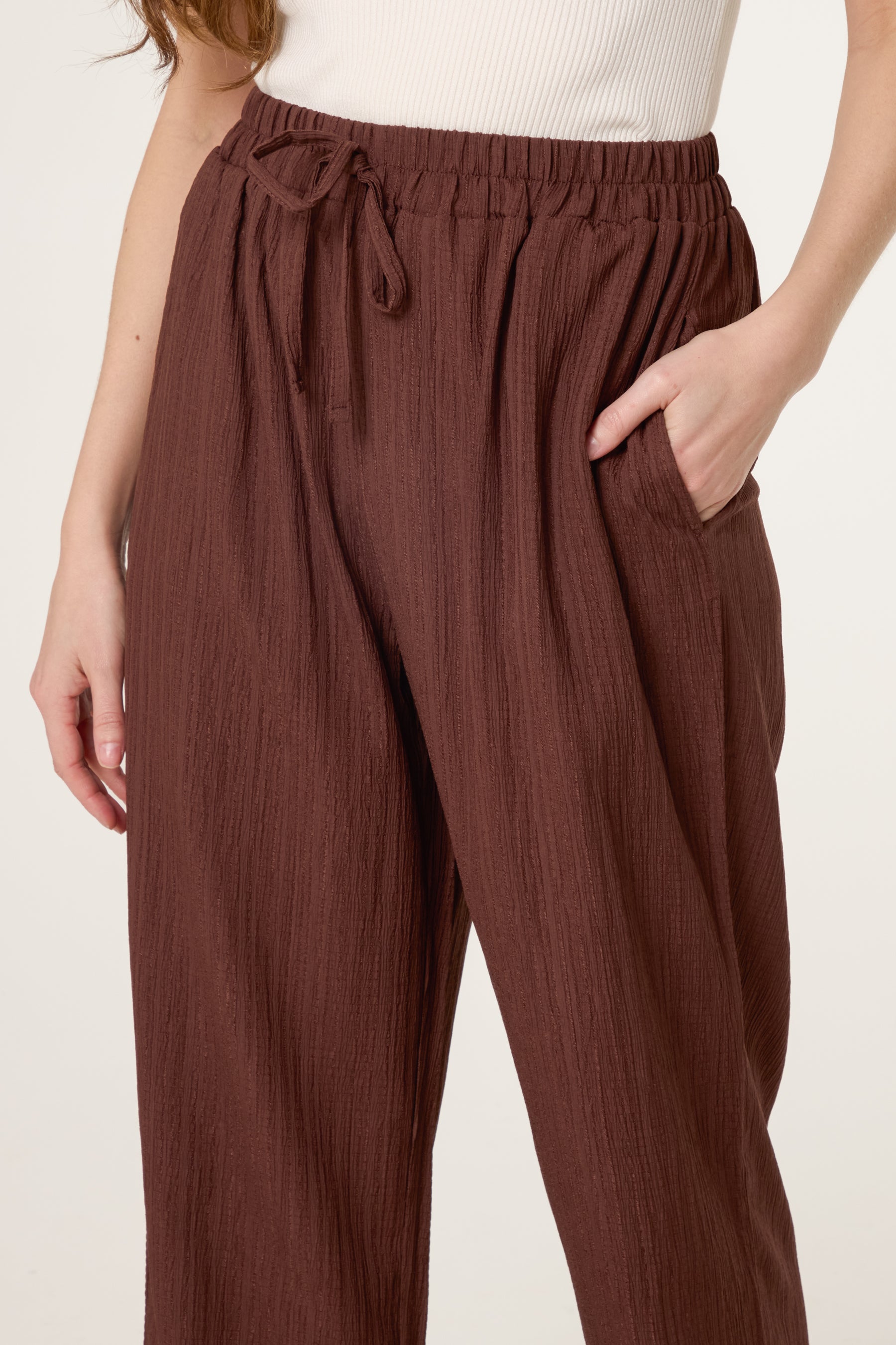 These crinkled trousers are perfect for casual looks and relaxed office days. Their super comfy and relaxed fit make them an easy choice.