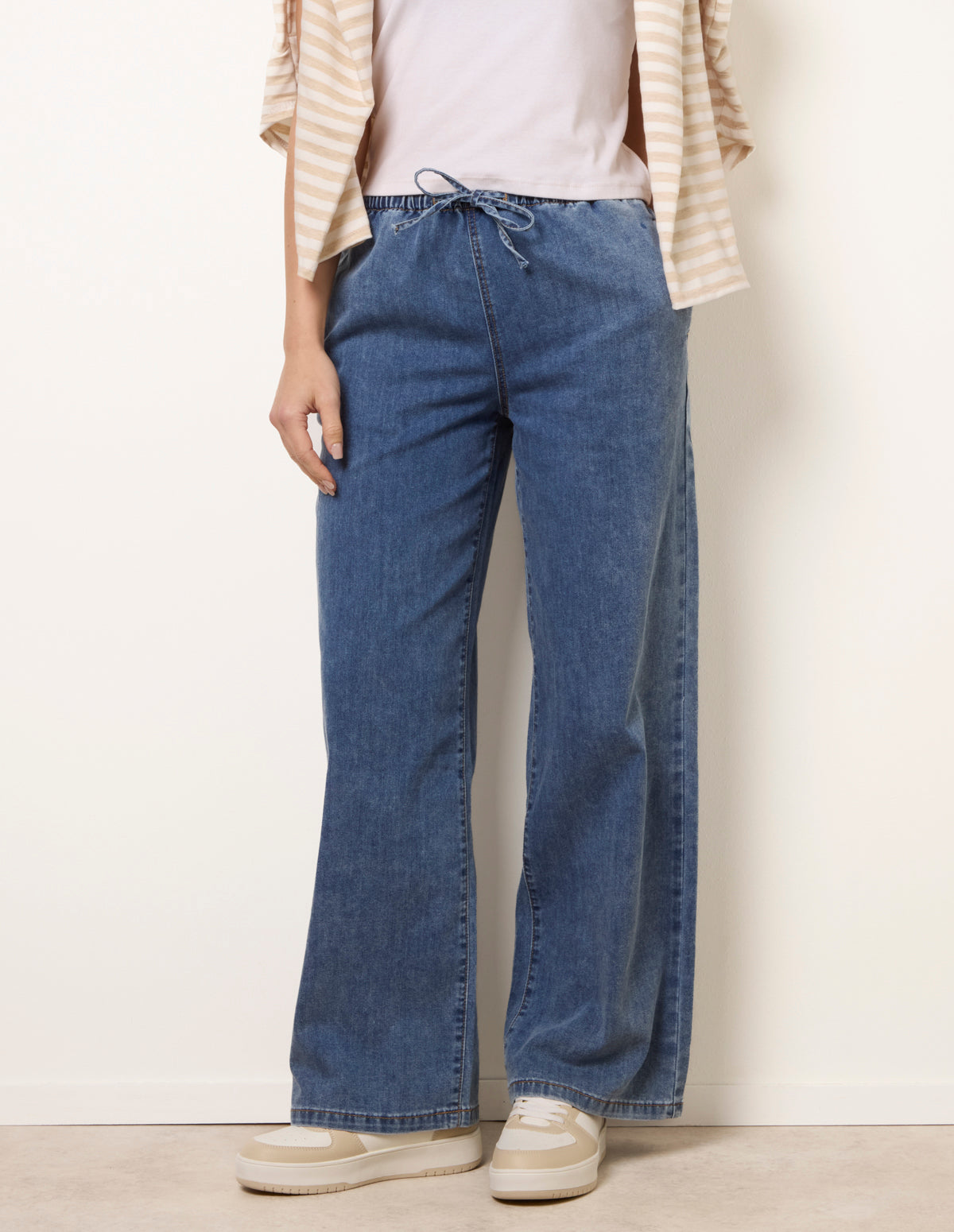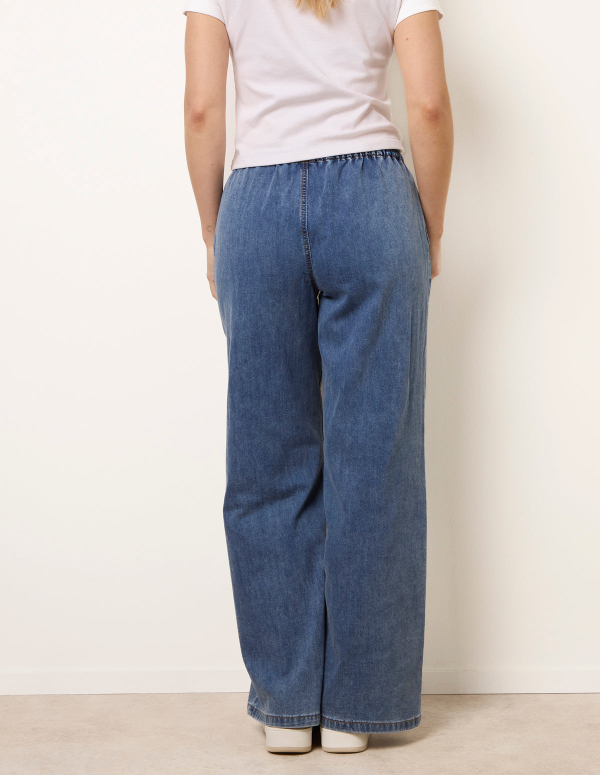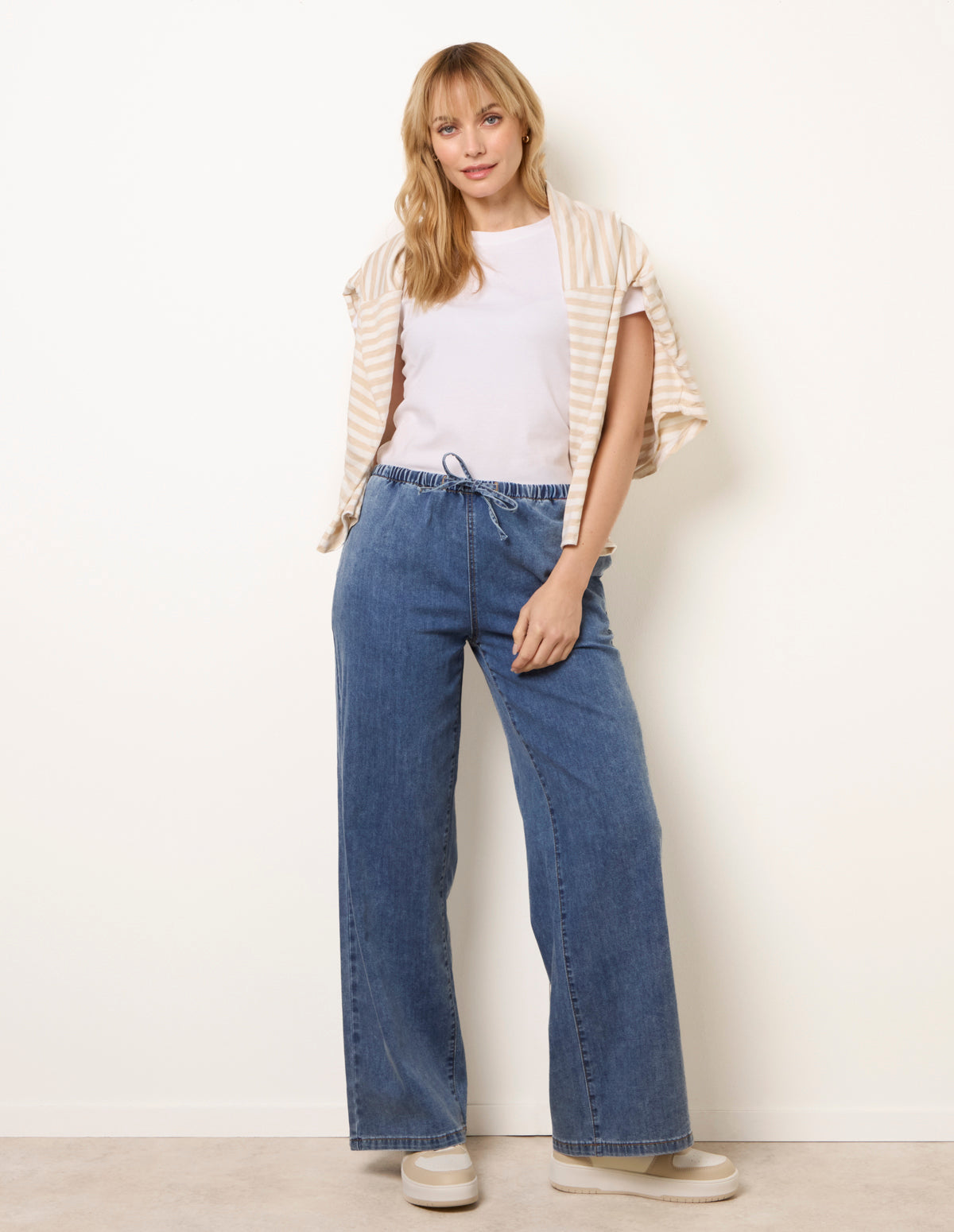 Merging the appeal of jeans with the comfort of trousers. These drawstring denim trousers provide everything you need this season.