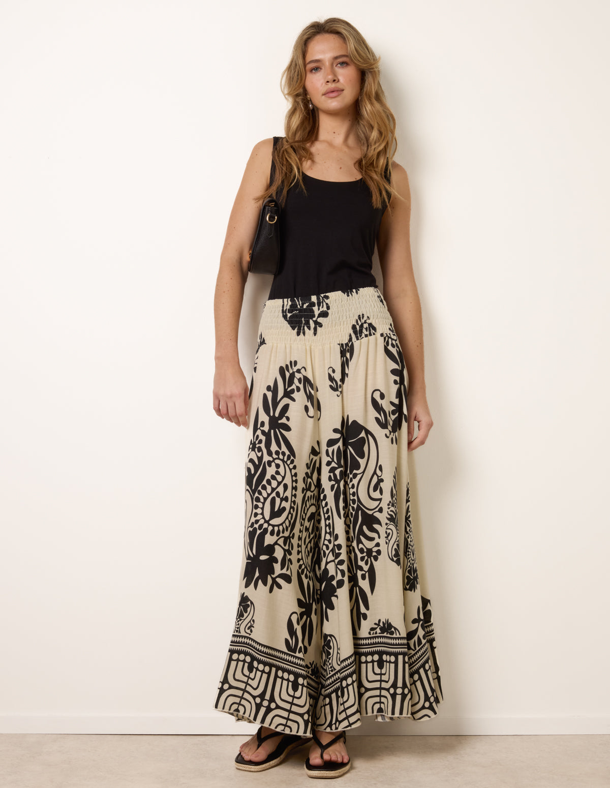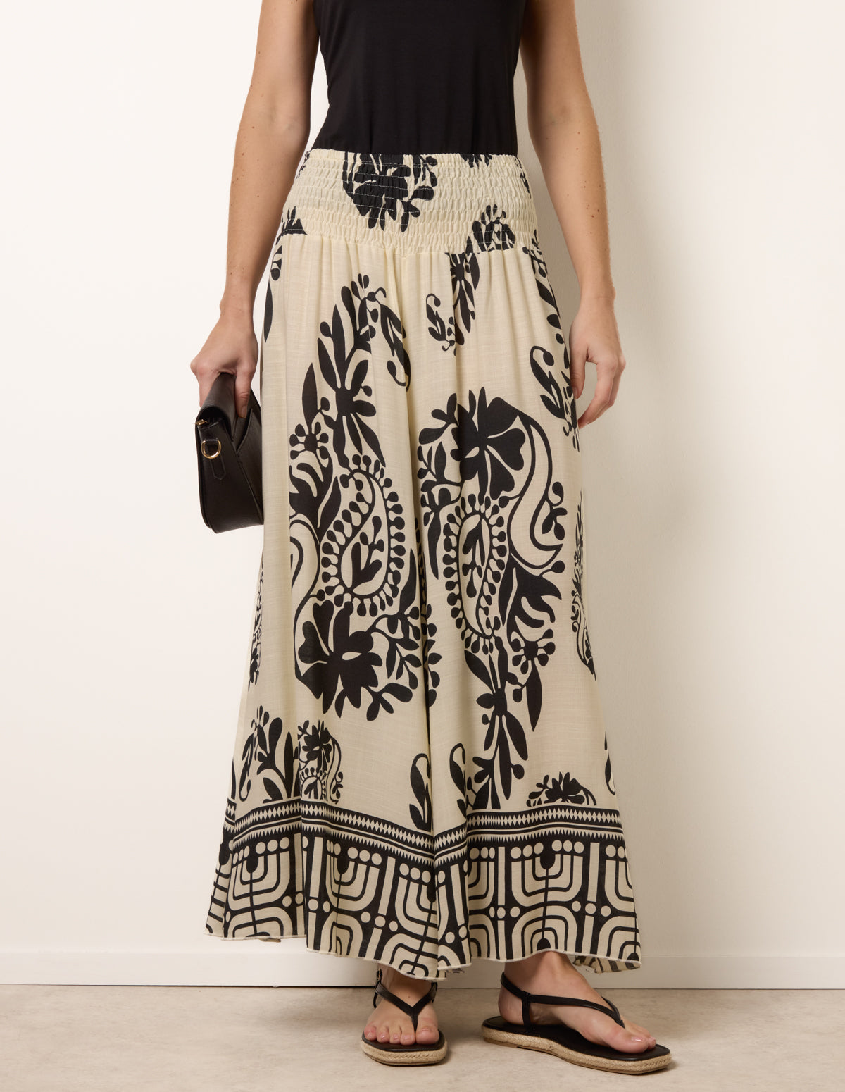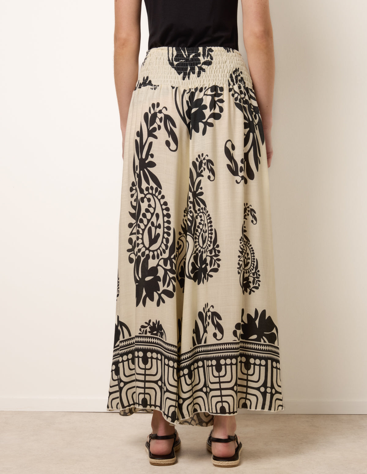 Extra Wide Leg Trousers With Paisley Floral Block Print