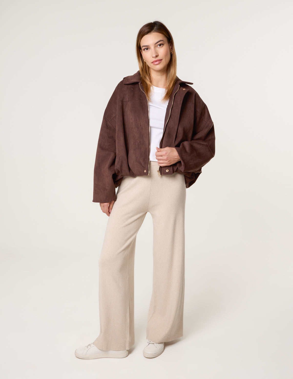 Flared knitted trousers that will help provide cosiness and warmth this AW! Team these wide leg trousers with a slouchy basic top and trainers.