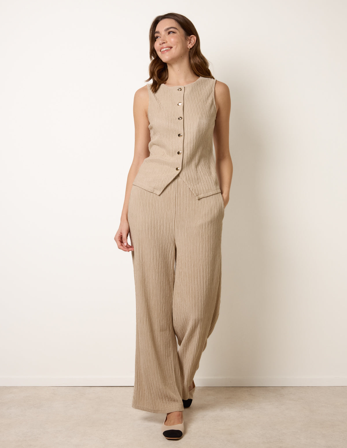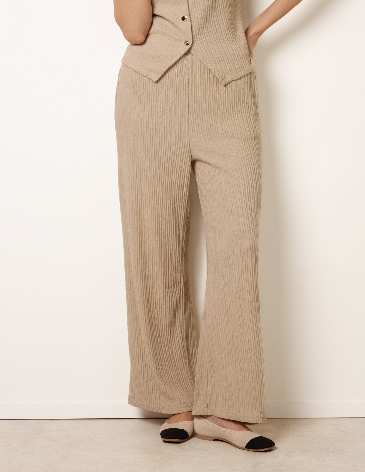These crinkled flared trousers create a beautifully defined silhouette especially when teamed with our matching tops. Whilst easily mixed with other wardrobe staples for multiple looks.