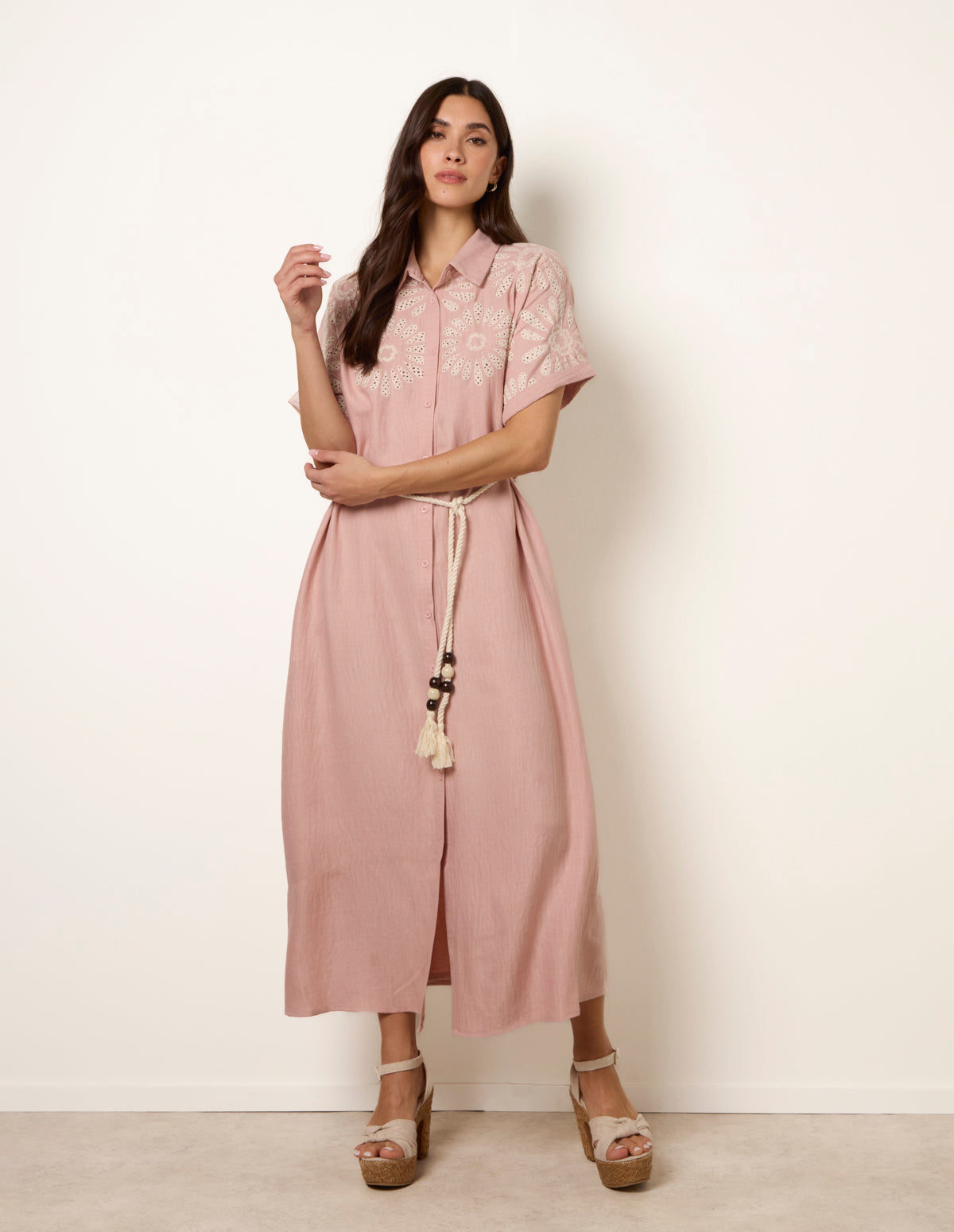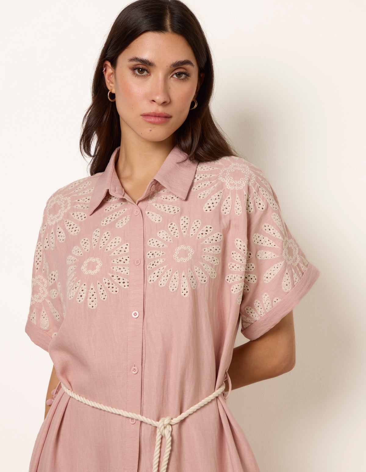 Featuring beautiful embroidery for a distinctive summertime look. Team this oversized dress with woven sandals.