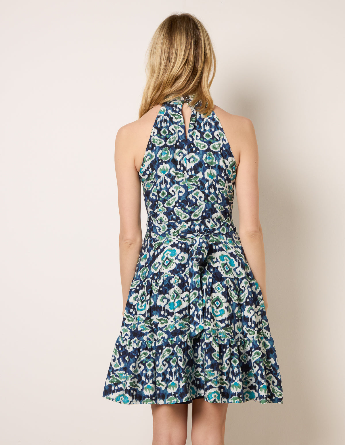 Tiered Halter Neck Aztec Belted Mini Dress