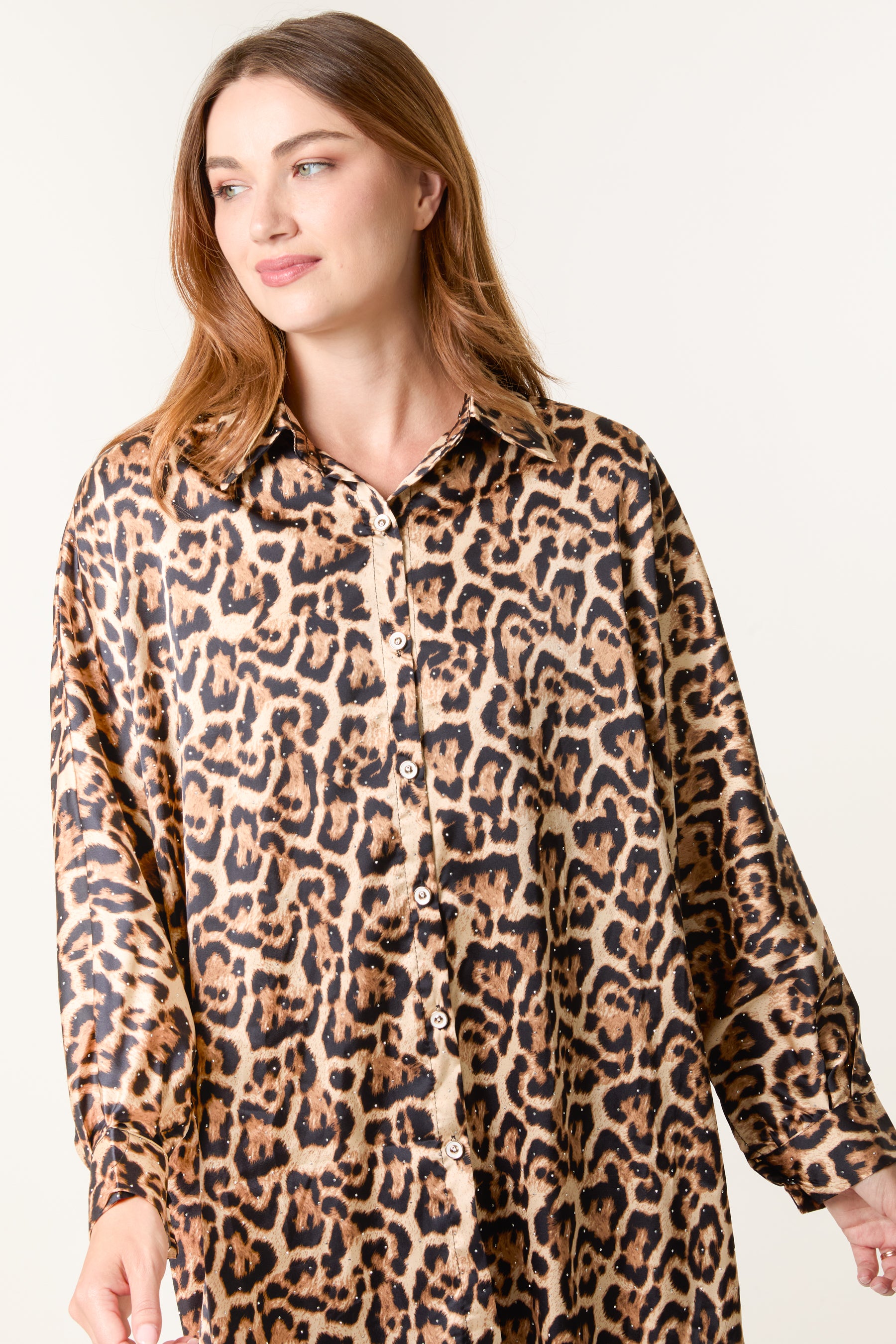 The leopard print shirt that will give all the compliments in this season.. Team this shirt with PU leather trousers, boot heels and a blazer.