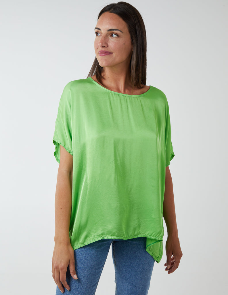Leopard Print Round Neck Batwing Shirred Hemband Top