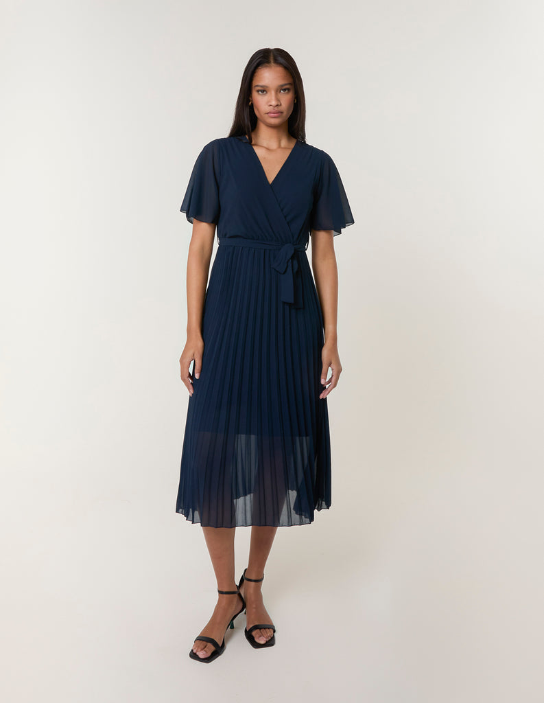 Pleated Crossover Metallic Glitter Dress