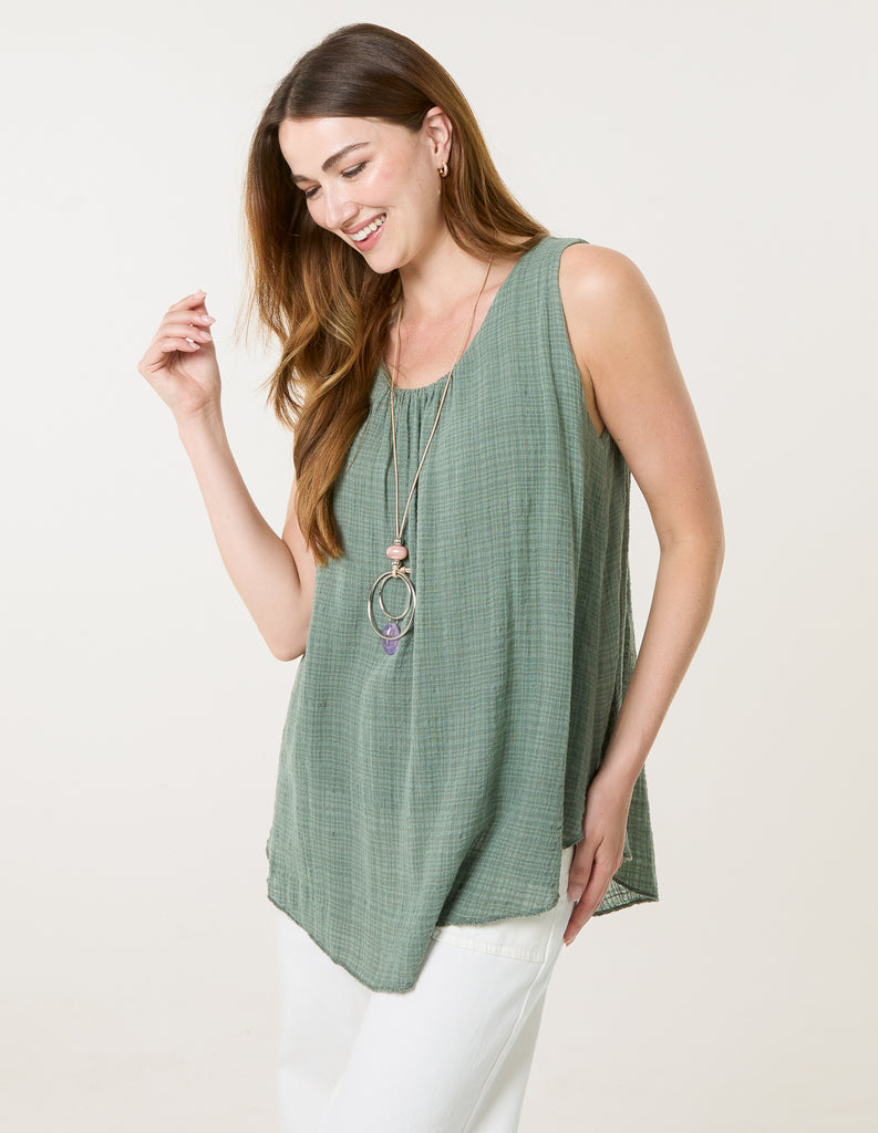 Gold Button Detail Frill Top