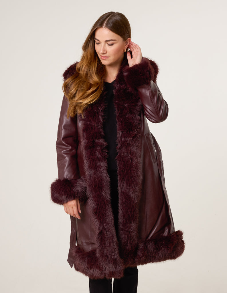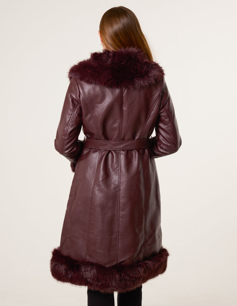 Faux Fur Trim Midi Coat