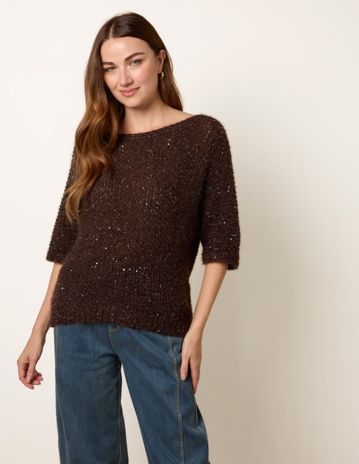 A cute and cosy fluffy sequin jumper to keep you warm and stylish throughout the party season.
