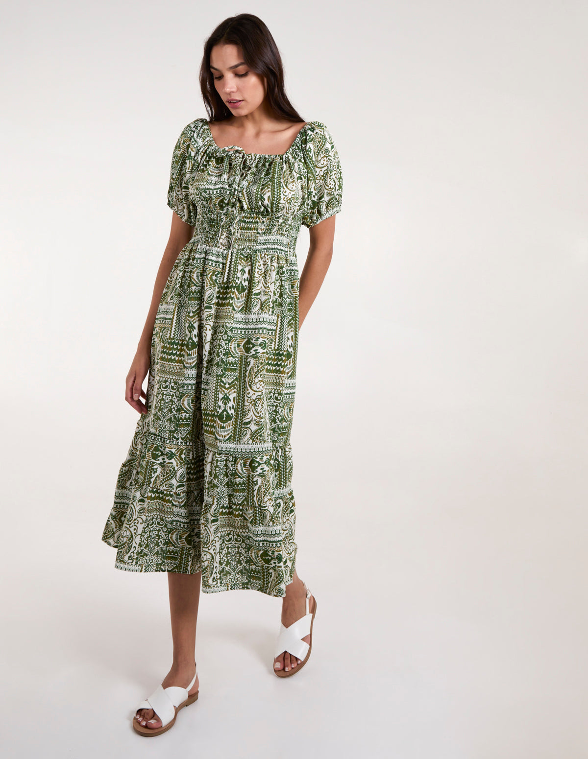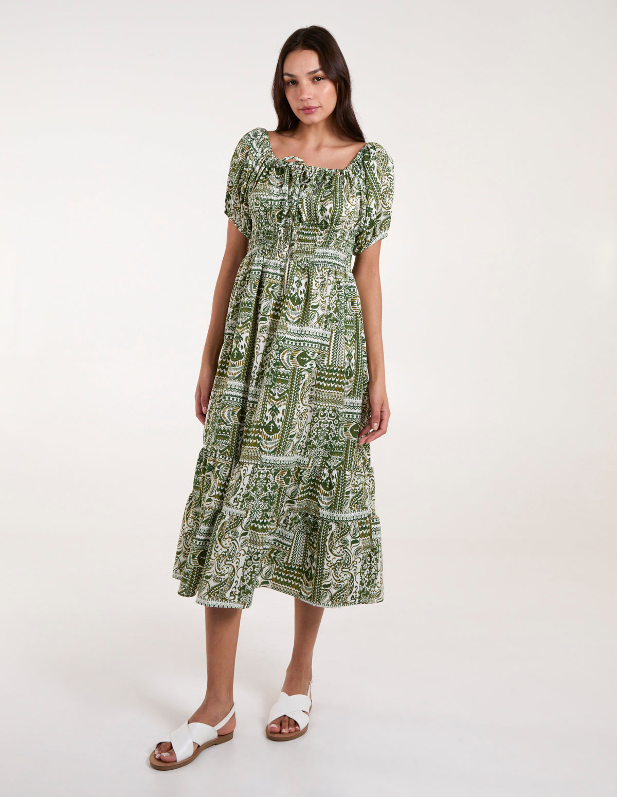 Scoop Neck Paisley Midi Dress