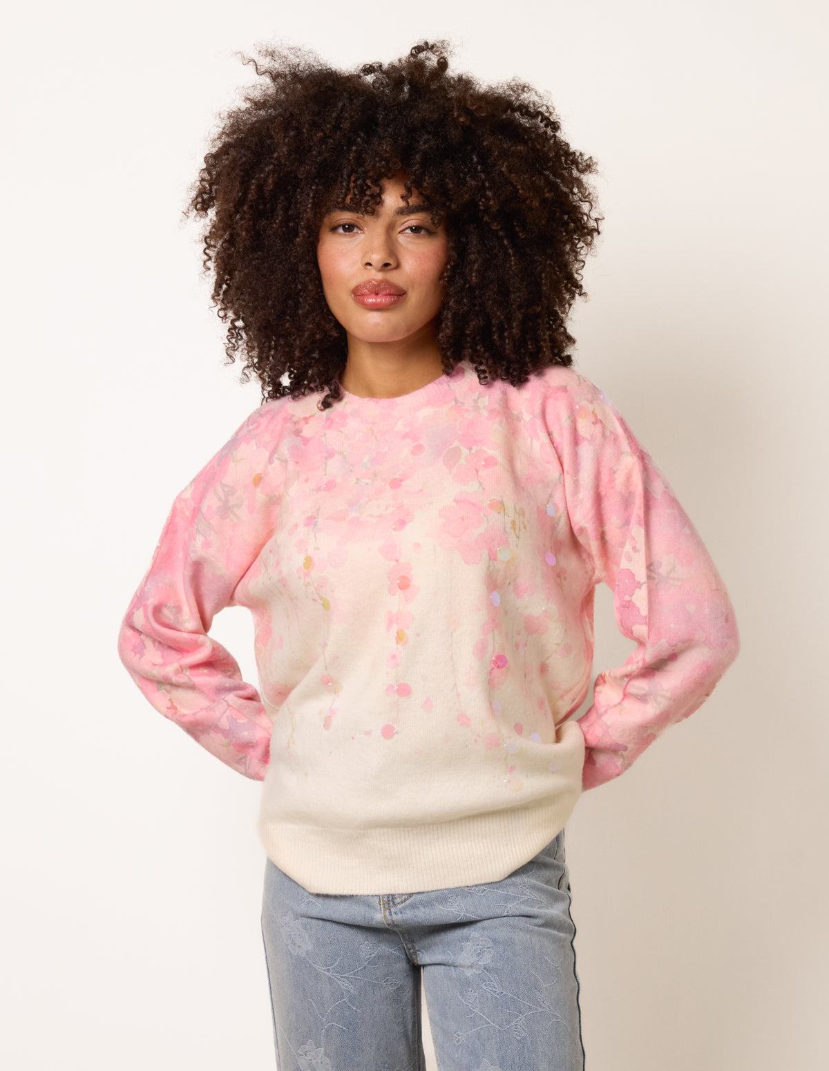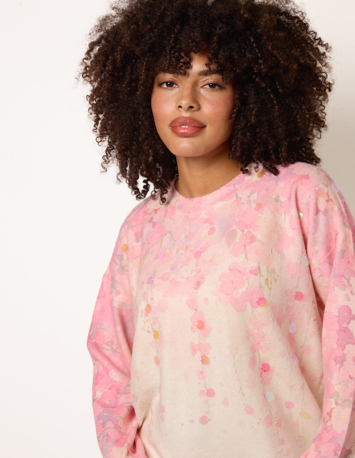 Embrace the spring season wearing this stunning sequin, floral detailed jumper.