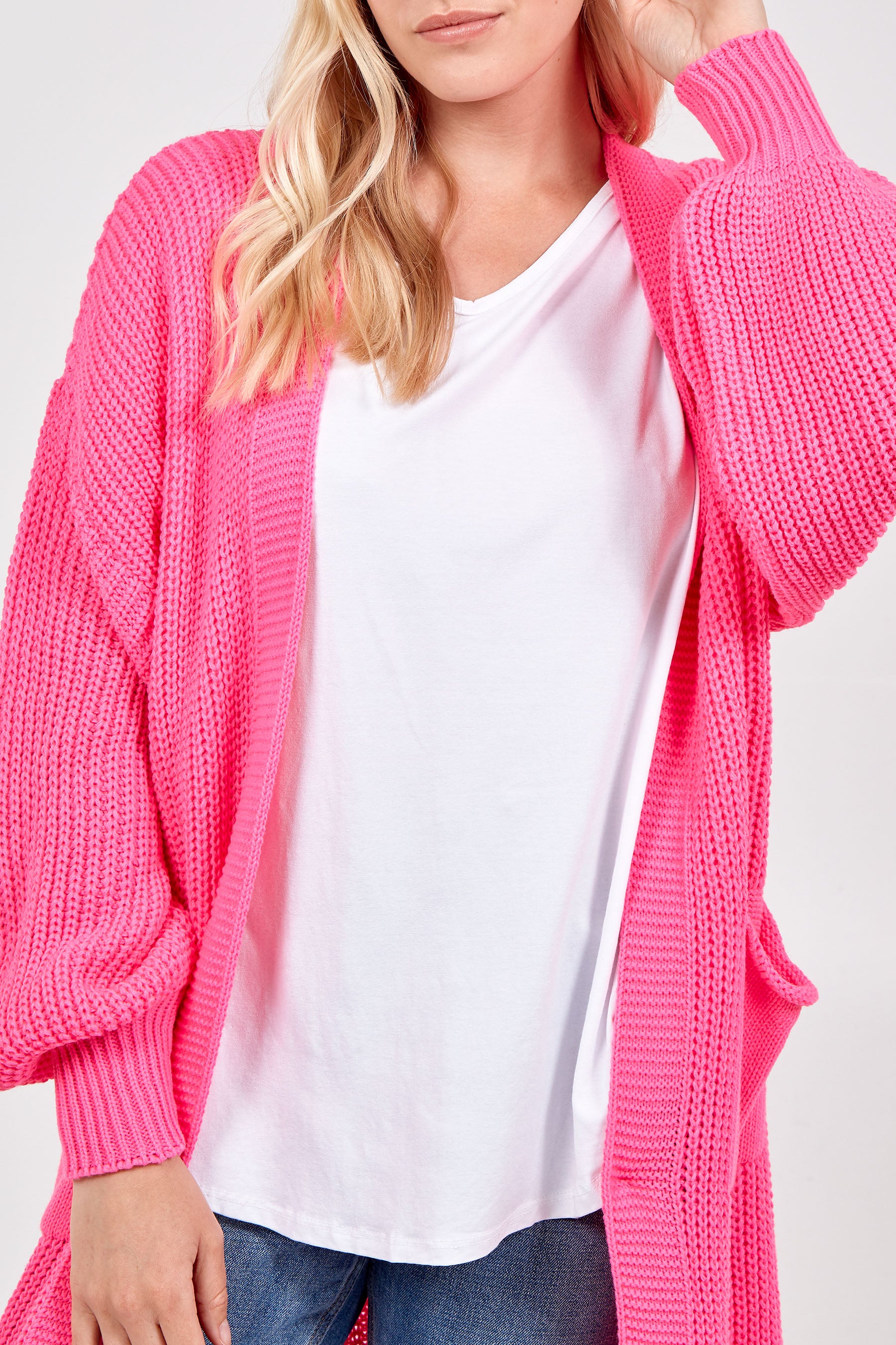 Get cosy in this stunning oversized cardigan. Open front and soft fabric makes this cardigan warm and cosy perfect for keeping the cold away. This cardigan will look great layered on top of dresses or your everyday jeans and a t-shirt!