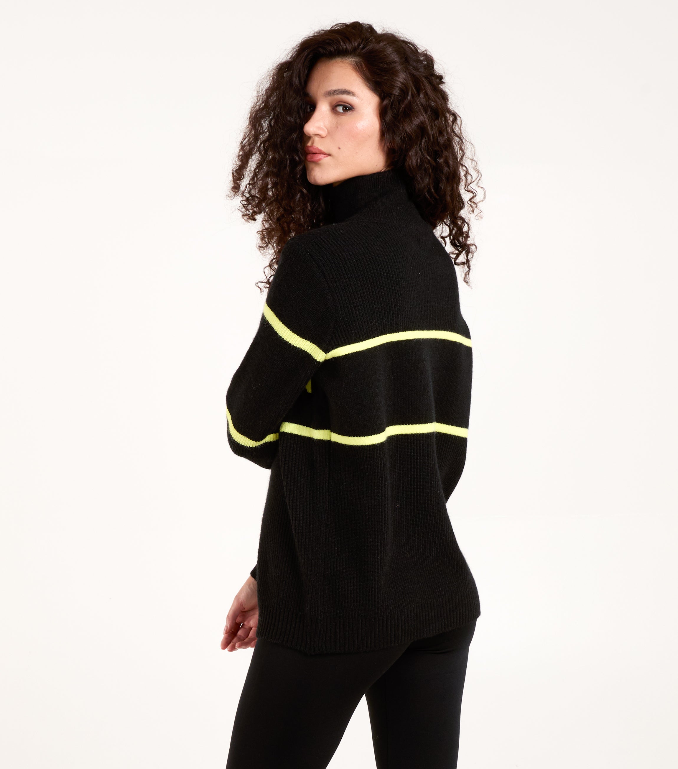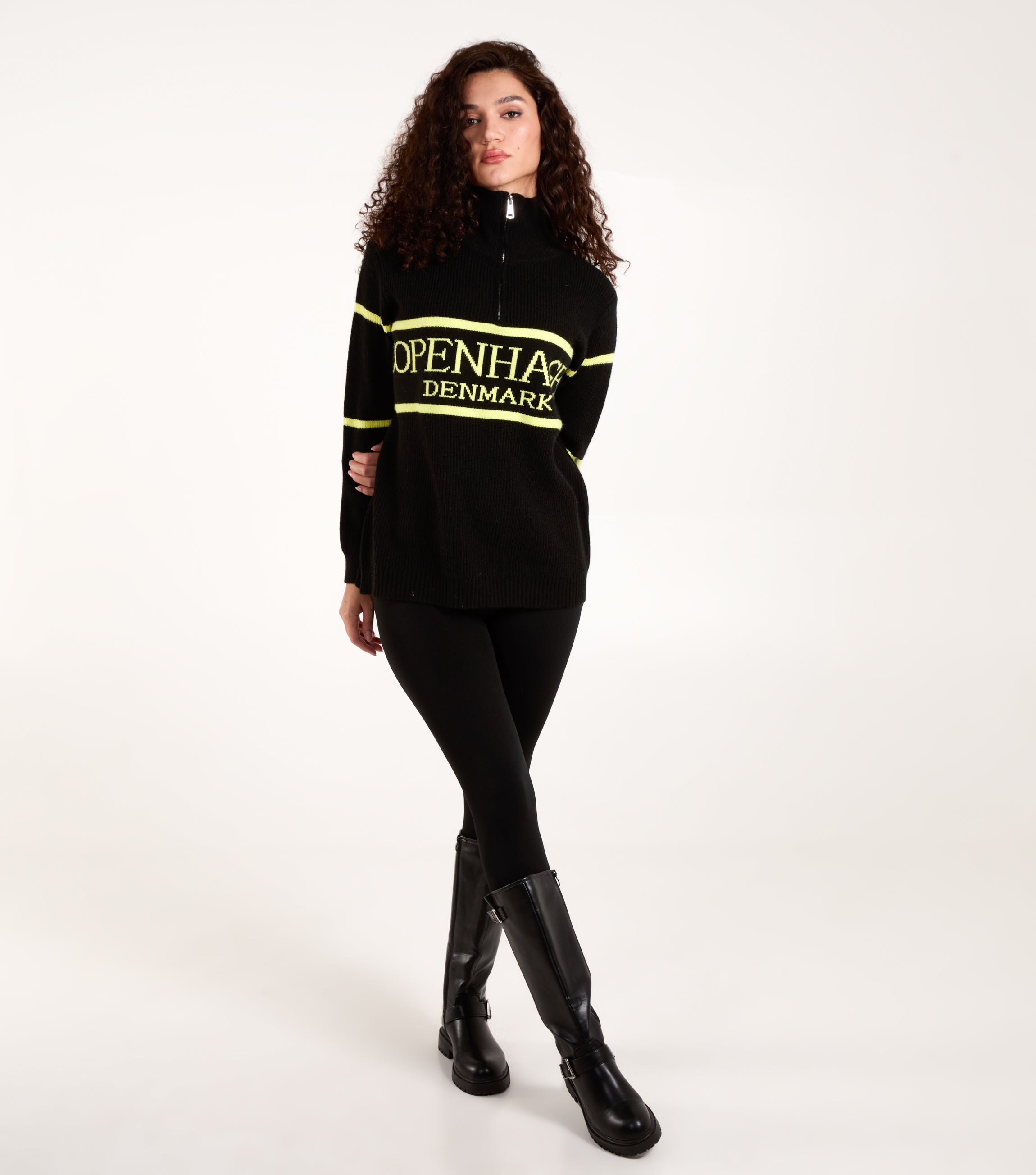 Would you like to go on a city break while staying warm? Here’s our zip neck jumper. It's soft, and it has a neckline that you can zip up to your liking. It can be worn with high waisted skinny jeans and black ankle boots, for a nice, casual look.