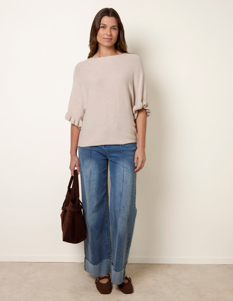 A soft touch knit to keep you feeling warm and cosy all season long. Team with leggings and chunky boots for the ideal day to day look.