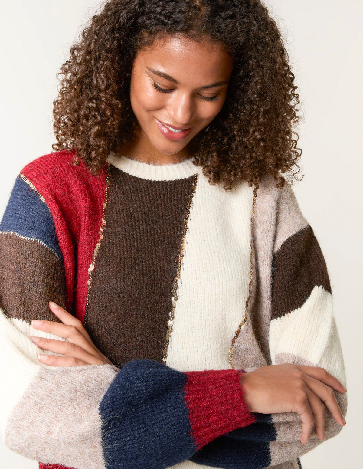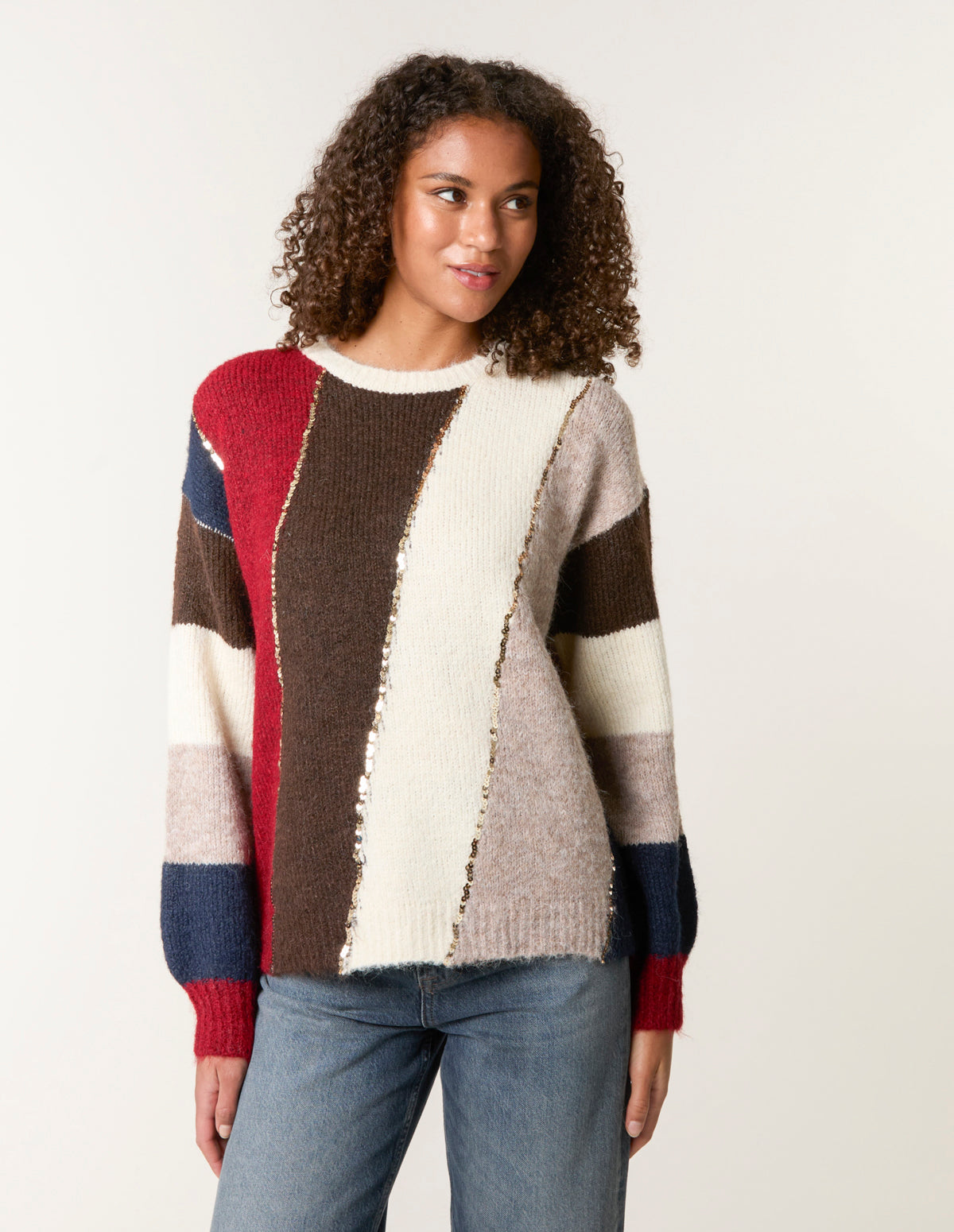Taking it back to the 80's ! This fun stripe sequin jumper adds some colour and fun to that winter wardrobe.