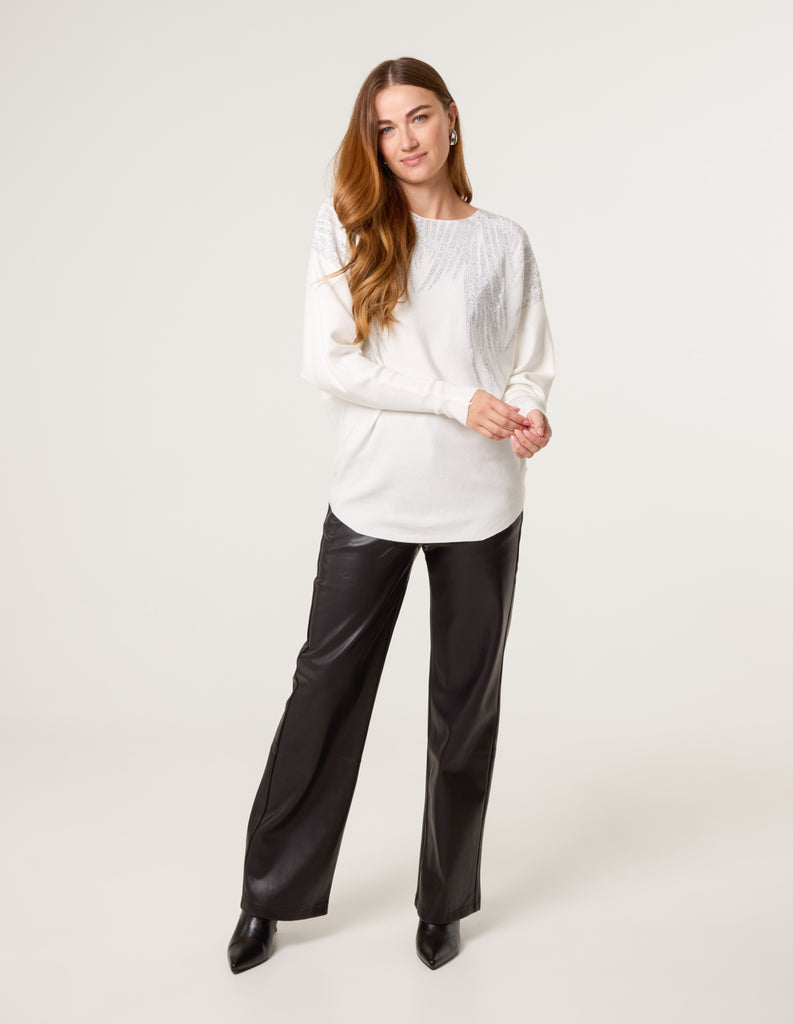 A dramatic rhinestone detailed jumper to help jazz up your everyday wear. Team this jumper with leggings, trainers and a comfy puffer jacket.
