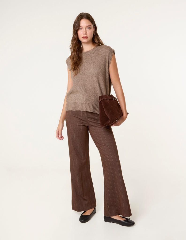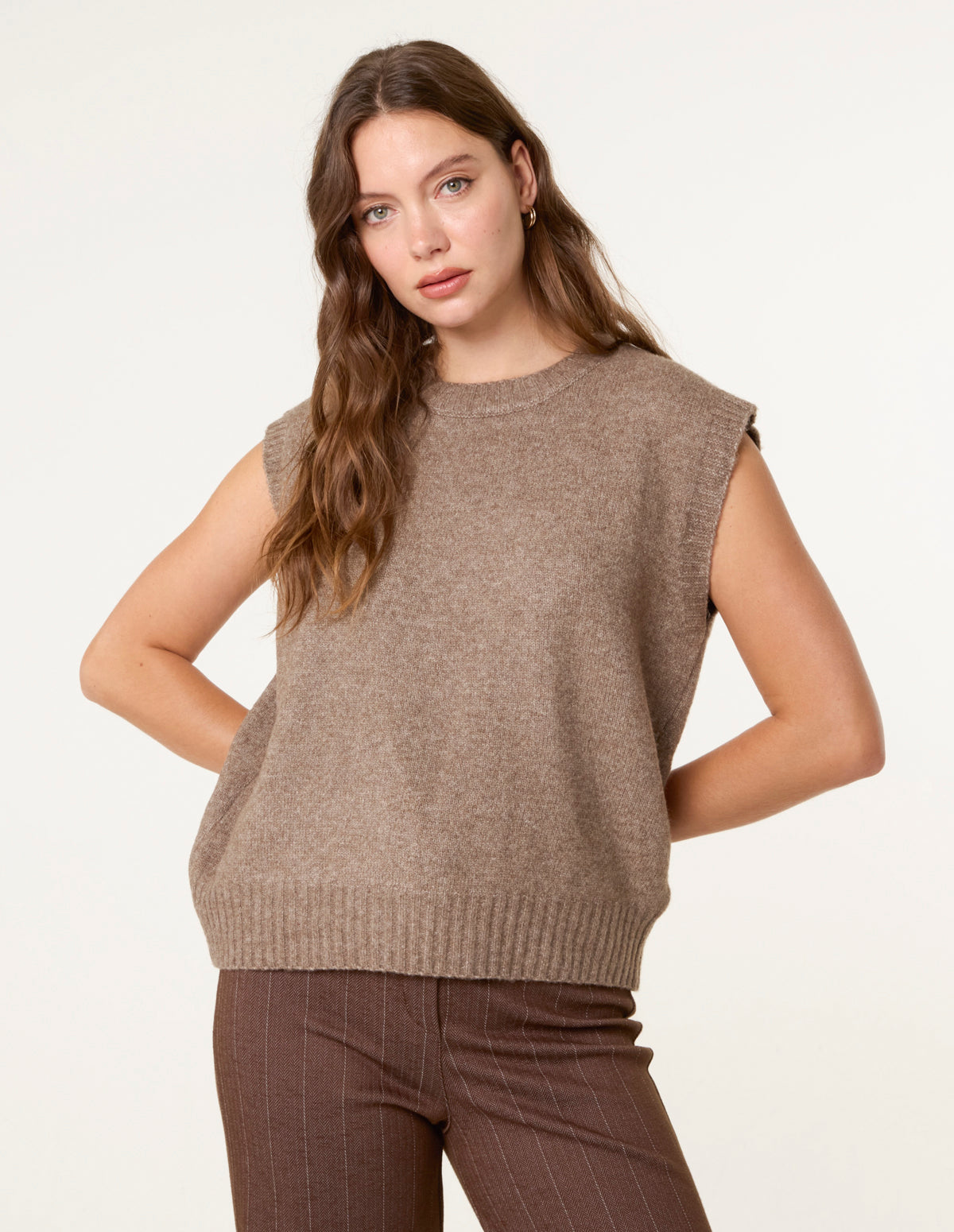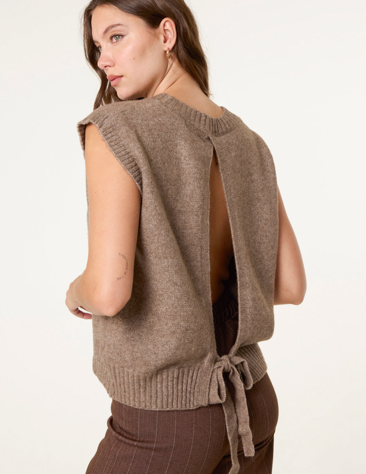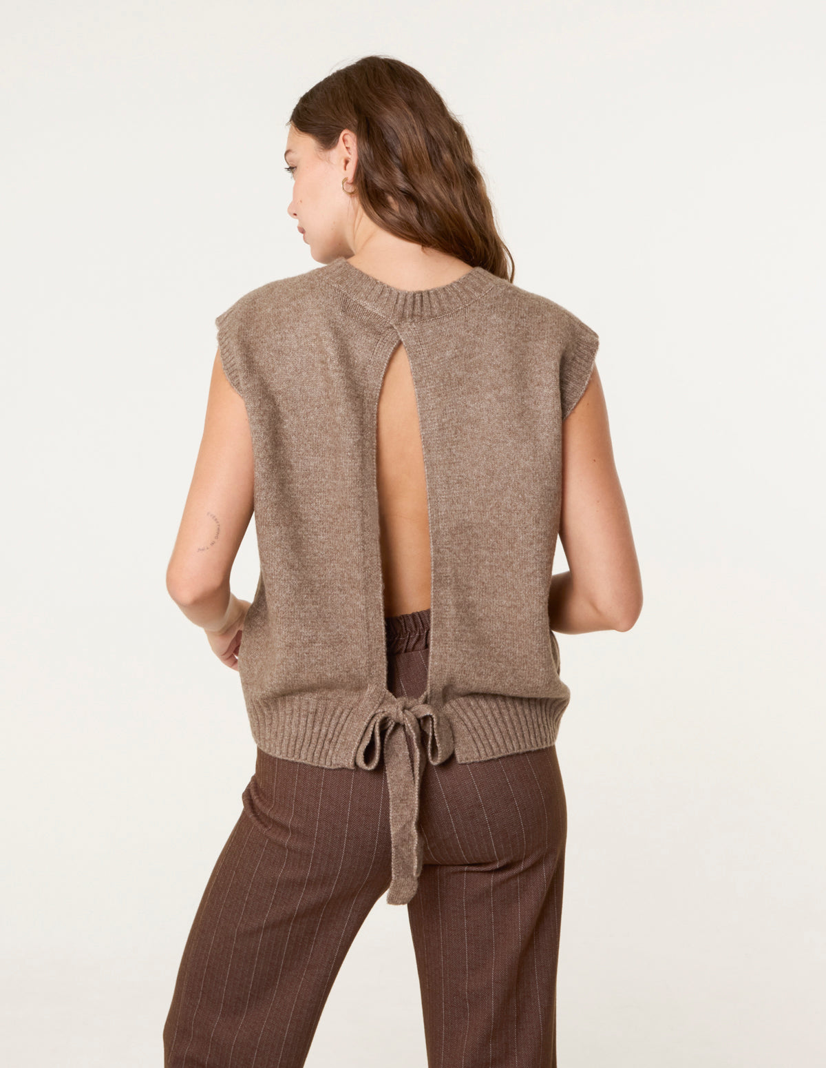 Warm up your wardrobe with this cute open back sleeveless jumper. The options are endless with this cosy knit. Team it layered over a shirt, or one it's own.