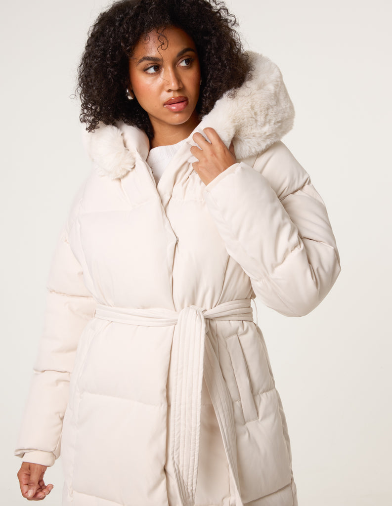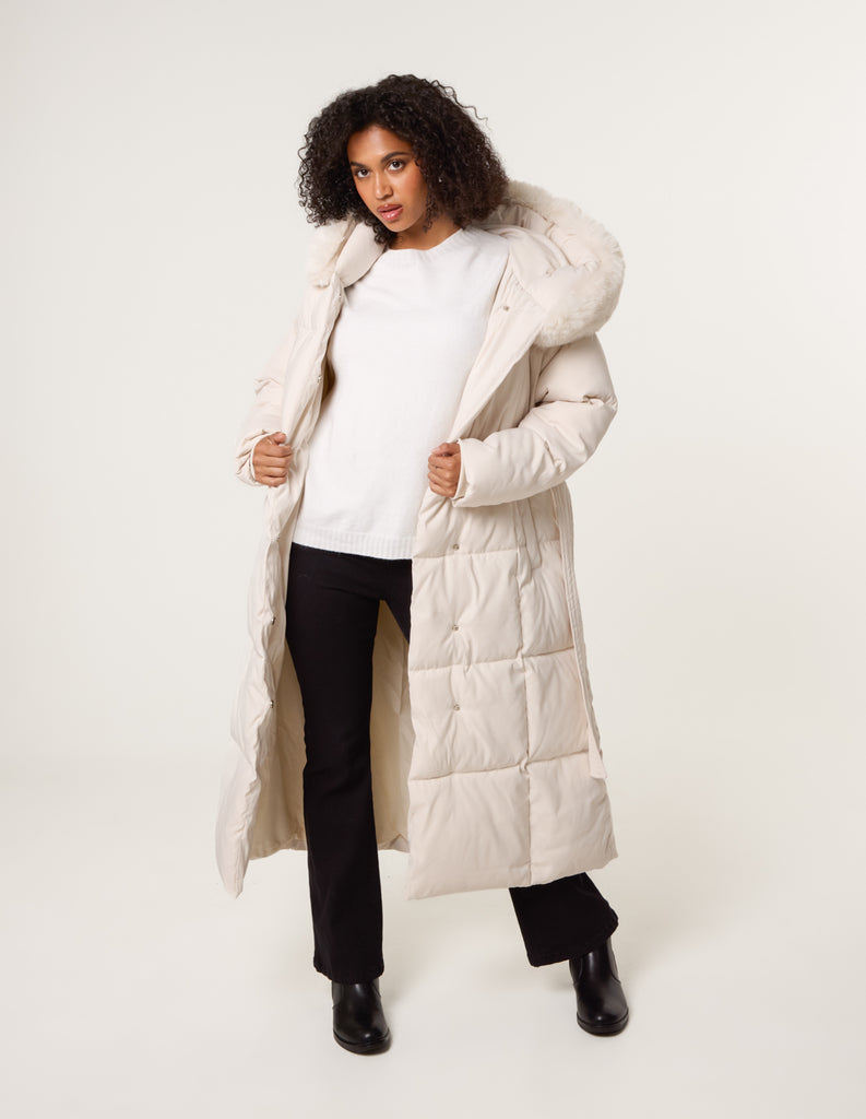 Long Puffer Faux Fur Hooded Coat