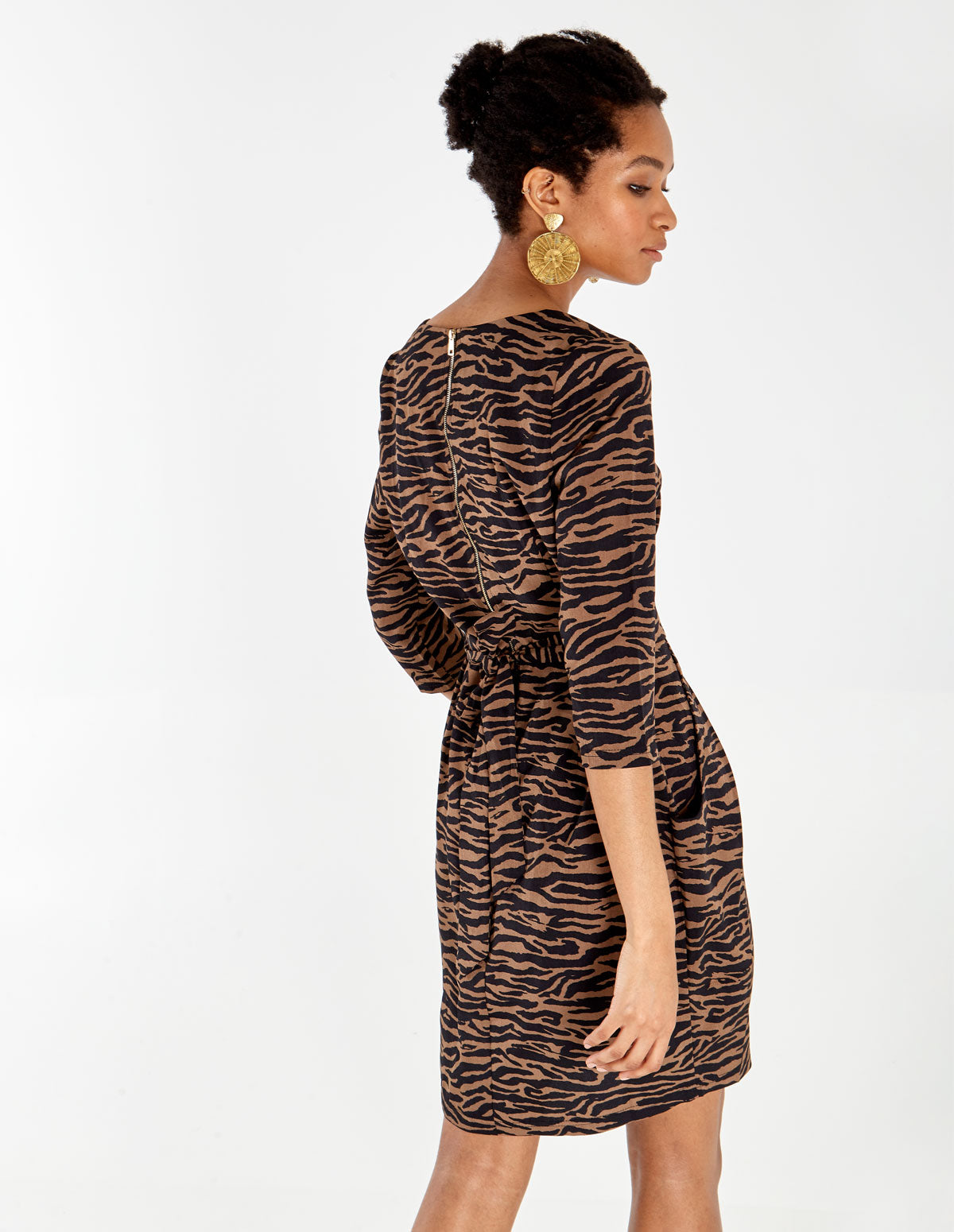 New in, this tulip dress is the perfect mix of comfort and style. Featuring an allover multi animal design, pockets and a square neckline, pair with heels and a matching clutch to complete the look.