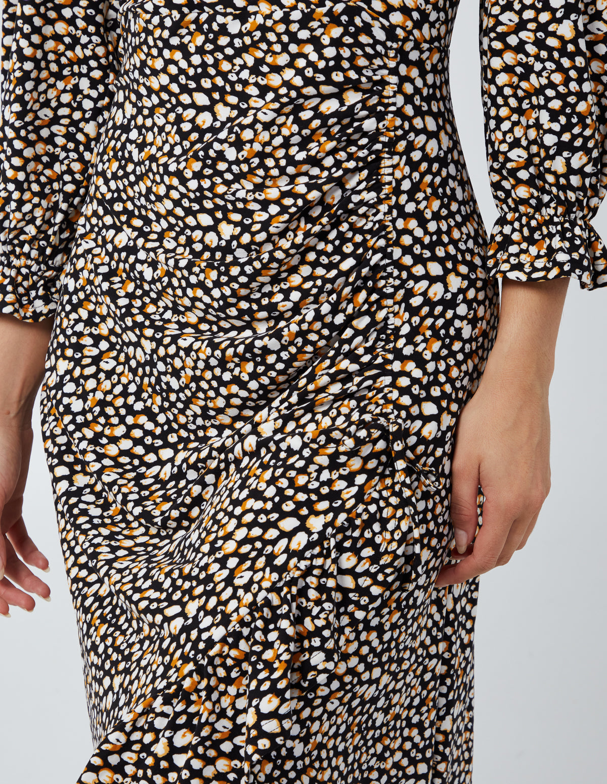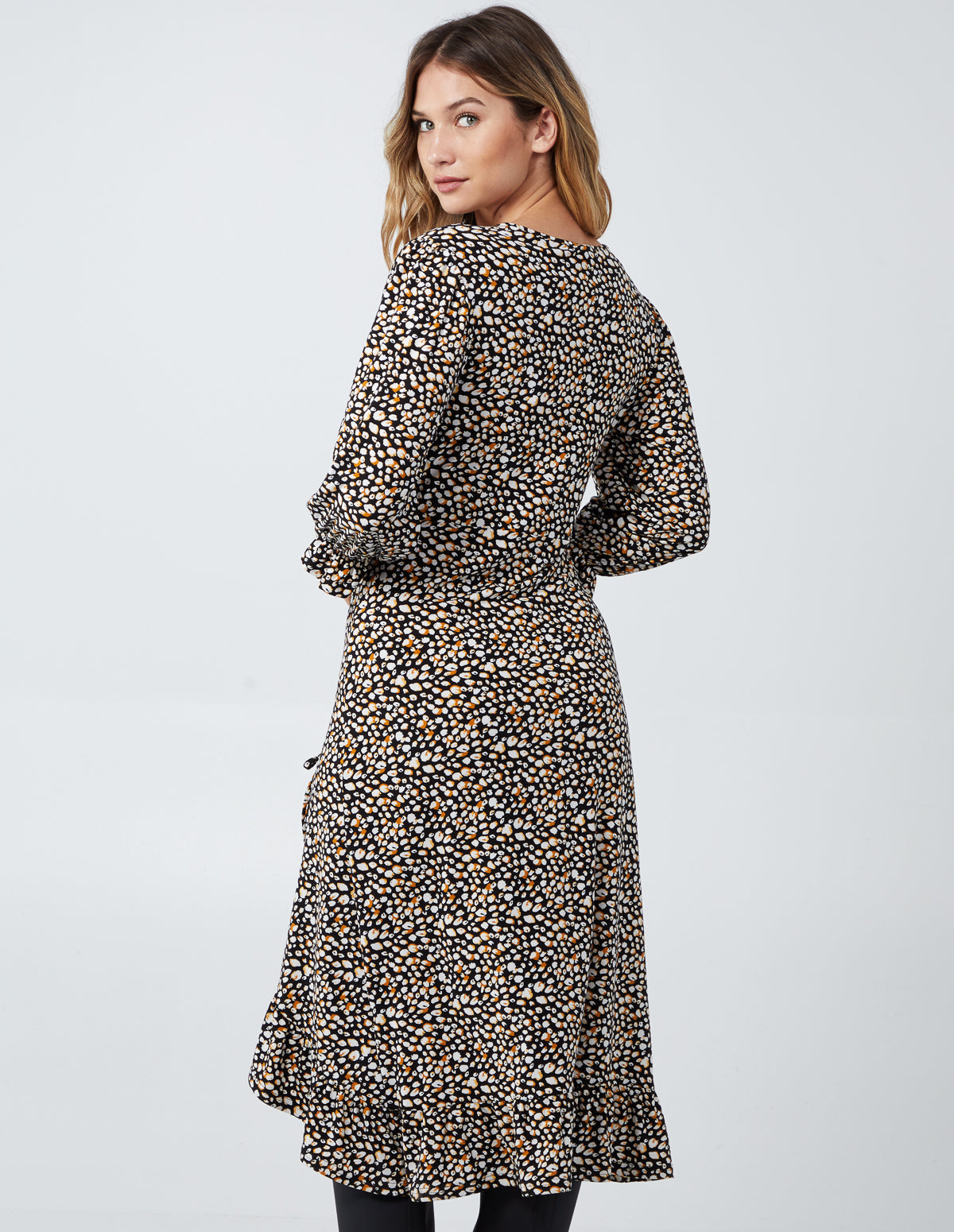 Be ready for the season in this stunning midi dress! Features soft touch fabric and ruched front this dress make this the perfect addition to your wardrobe this season. Finish off the look with heels and a black handbag!
