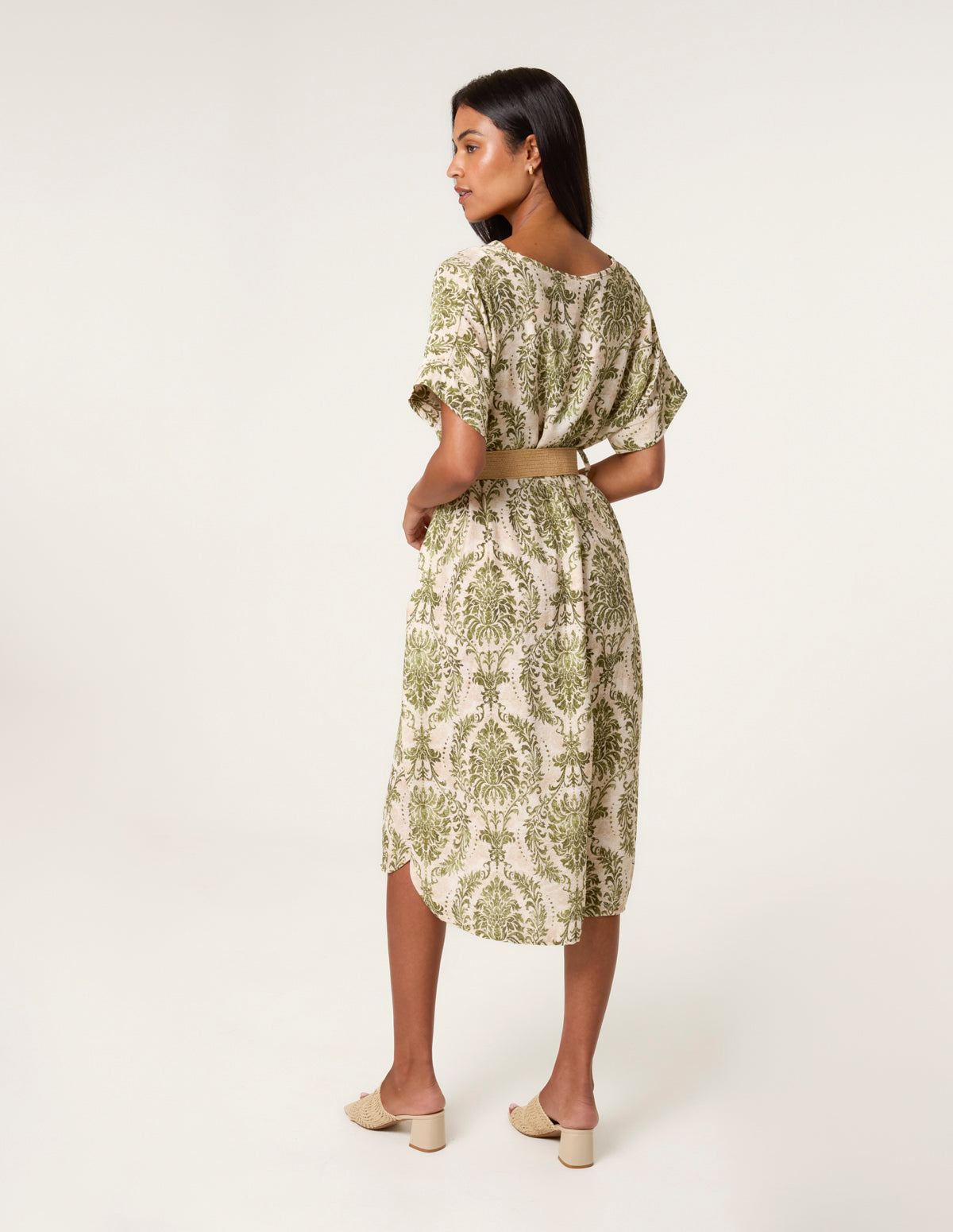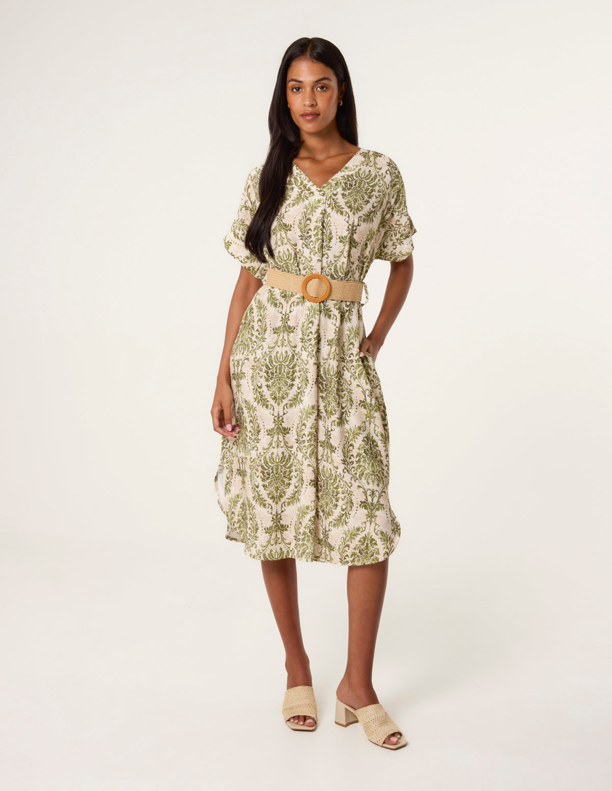 A summer time dress you'll sure to wear all summer long. With it's woven belt team with sandals to match.