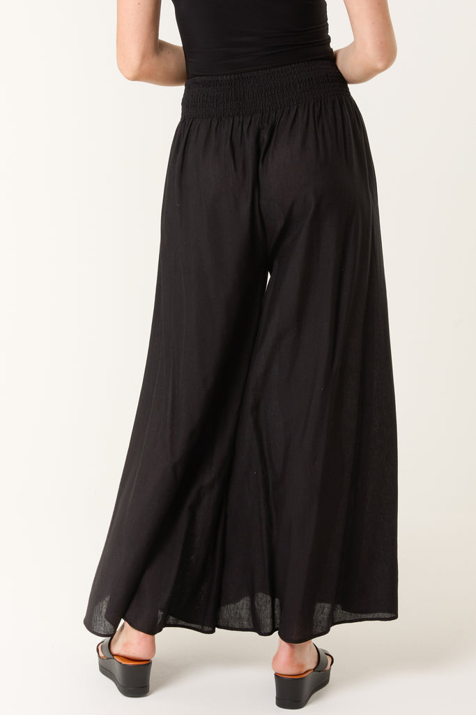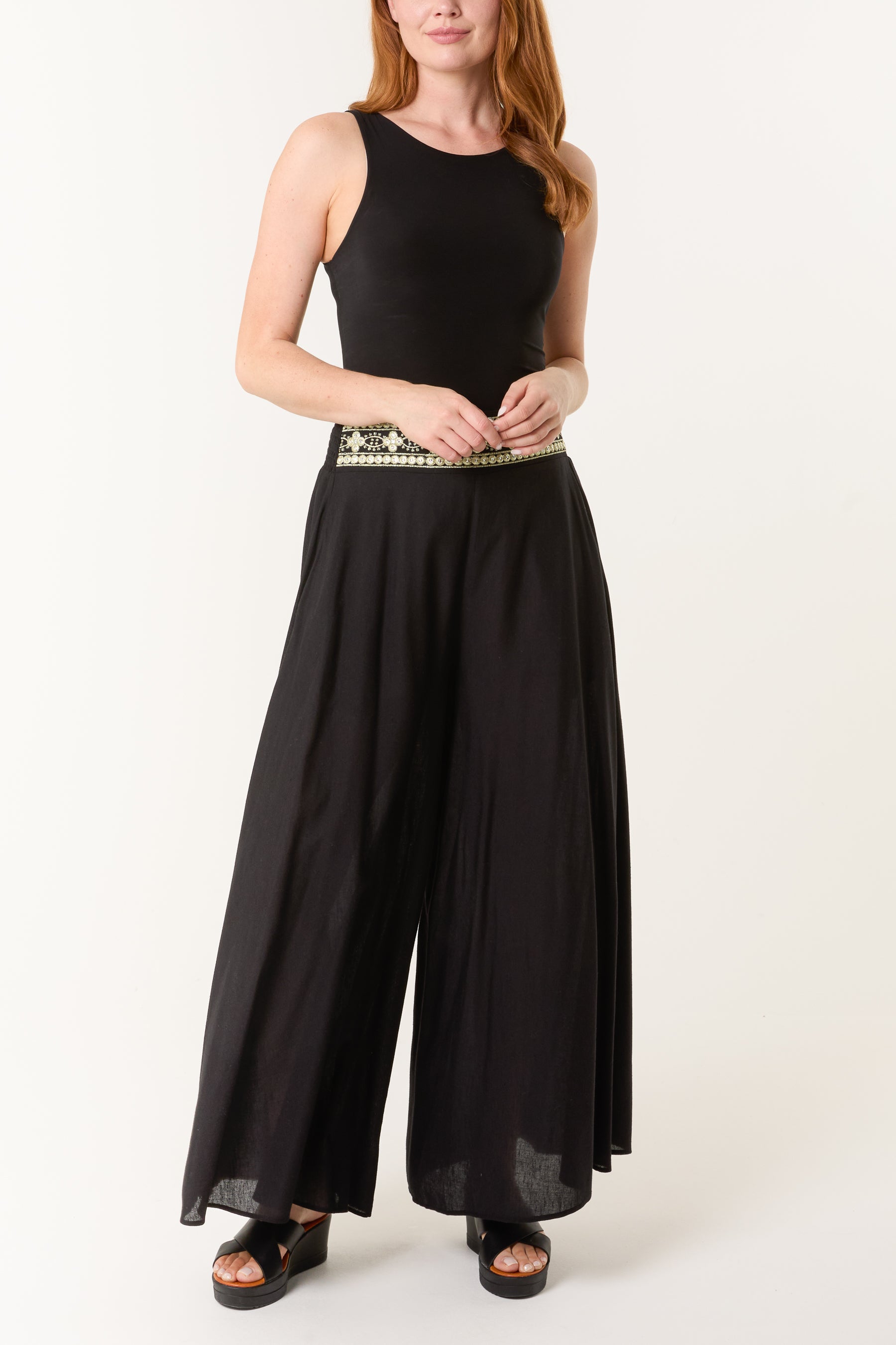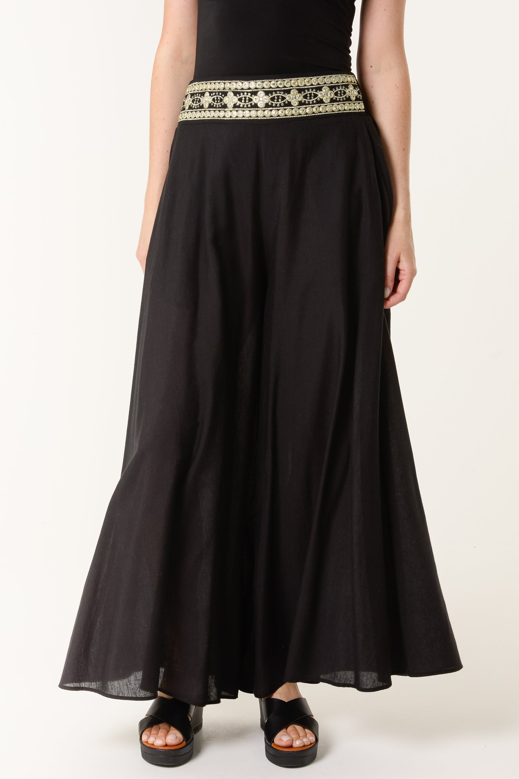 Wide Leg Embellished Linen Trousers