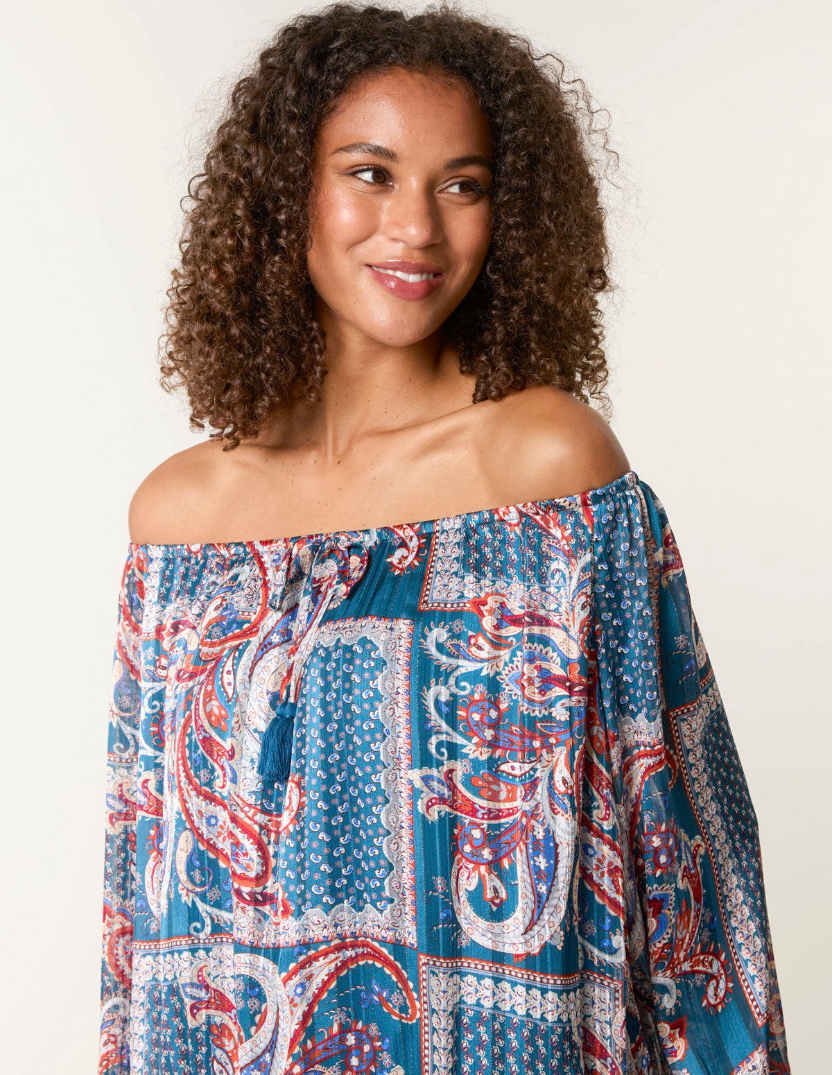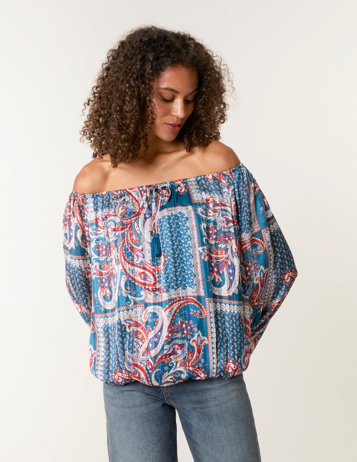 A fun option for you this AW. Team this paisley blouse with flared denim jeans and chunky heels. Add hoops and a gold clutch bag to finish off this boho chic look.
